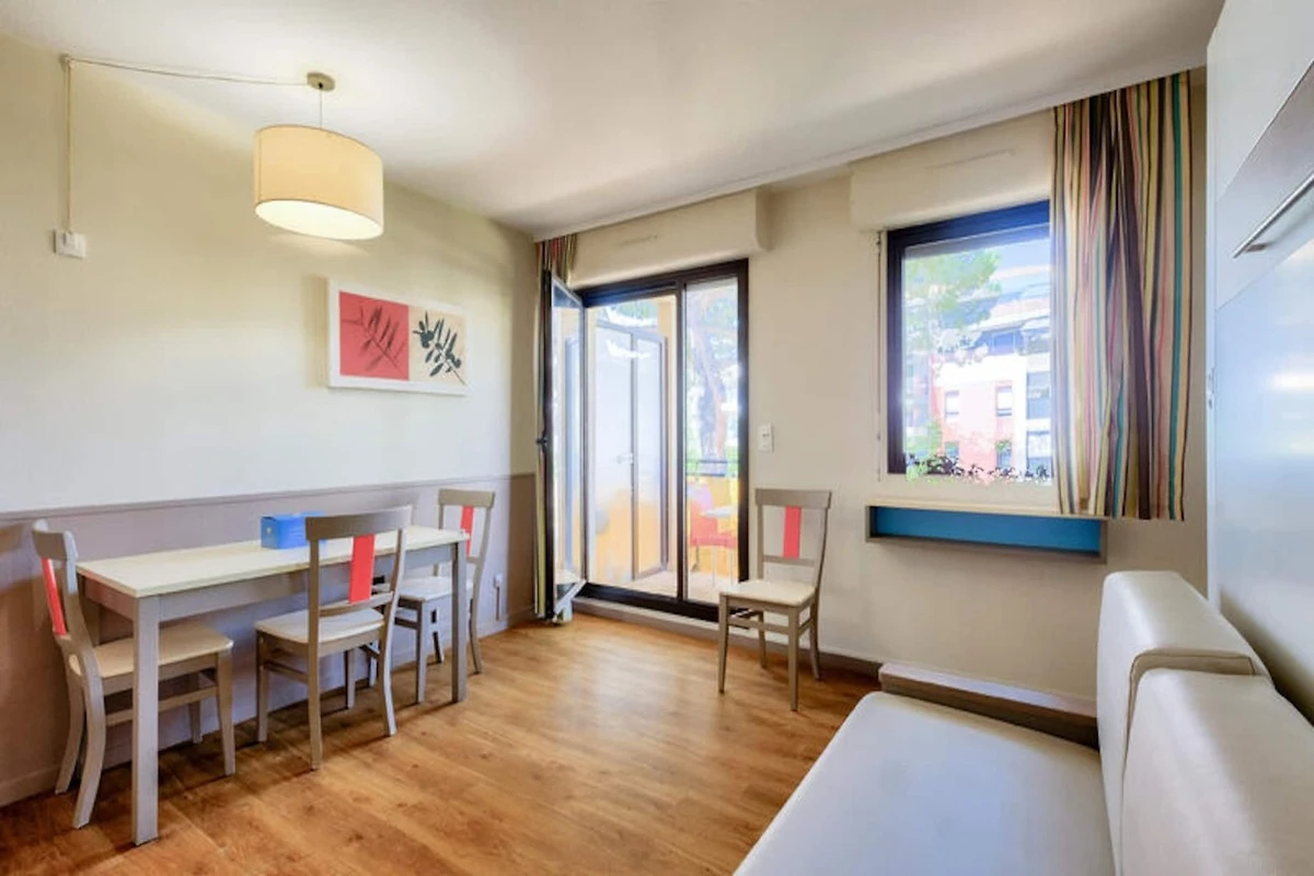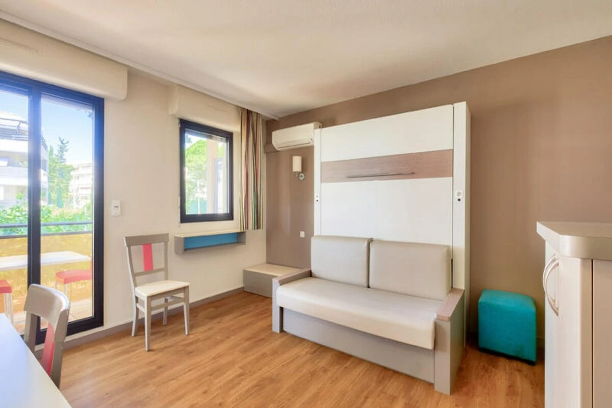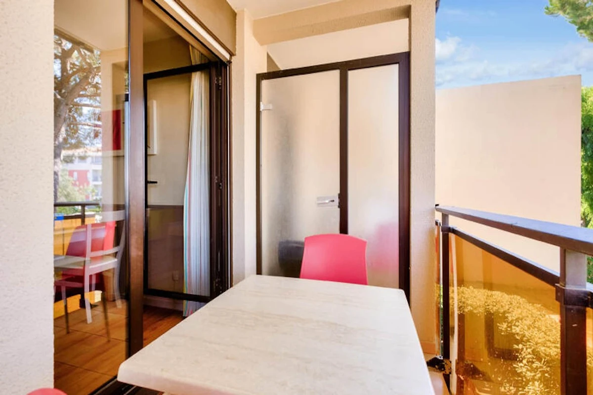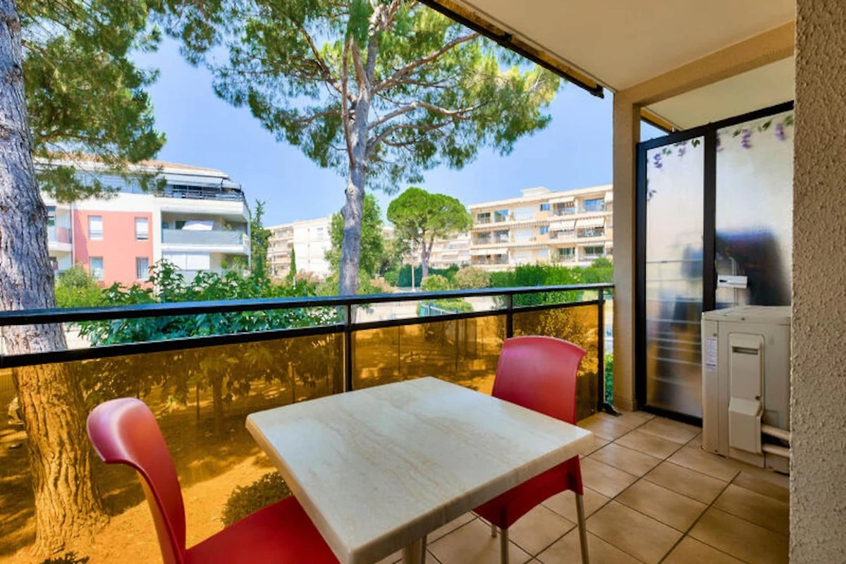 Im Herzen von Mandelieu-la-Napoule gelegen, direkt am Tor zu Cannes, bietet diese entzückende Residenz eine perfekte Mischung aus städtischem Komfort und ruhiger natürlicher Umgebung. Eingebettet in einen üppigen, privaten Garten bietet das Anwesen einen ruhigen Rückzugsort und ist gleichzeitig nur 50 Meter von Geschäften und 1,5 Kilometer von den Sandstränden entfernt. Die Residenz verfügt über gemütliche, klimatisierte Apartments, die auf Komfort ausgelegt sind und für ihr Engagement für ökologischen Tourismus mit dem Label Clé Verte ausgezeichnet wurden. Für zusätzlichen Komfort stehen den Gästen eine private überdachte Terrasse und begrenzte Parkplätze vor Ort zur Verfügung.