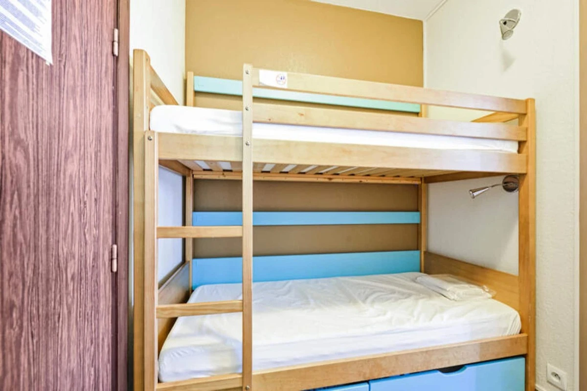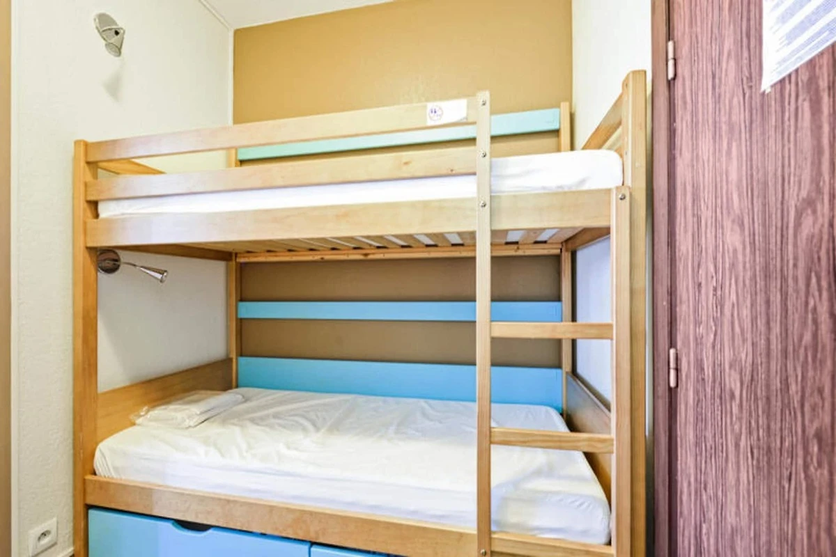Die Wohnung selbst ist kompakt und funktional und bietet komfortable 25 m² Wohnfläche mit Wohnzimmer, Küchenbereich, Kabinenraum mit Etagenbetten, einem Badezimmer mit Badewanne und einem separaten WC. Die private Terrasse oder der Balkon eignen sich perfekt zum Genießen von Mahlzeiten im Freien und sind mit einem Tisch und Stühlen ausgestattet. Die Unterkunft ist ideal für kleine Familien oder Paare und verfügt über ein Schlafsofa im Wohnzimmer (für 2 Personen), neue Bettwäsche und einen Essbereich. Zusätzliche Dienstleistungen wie WLAN, Parkplätze (je nach Verfügbarkeit) und Baby-Sets sind gegen Aufpreis verfügbar.