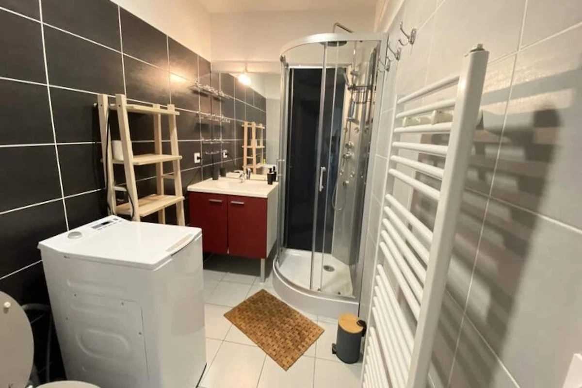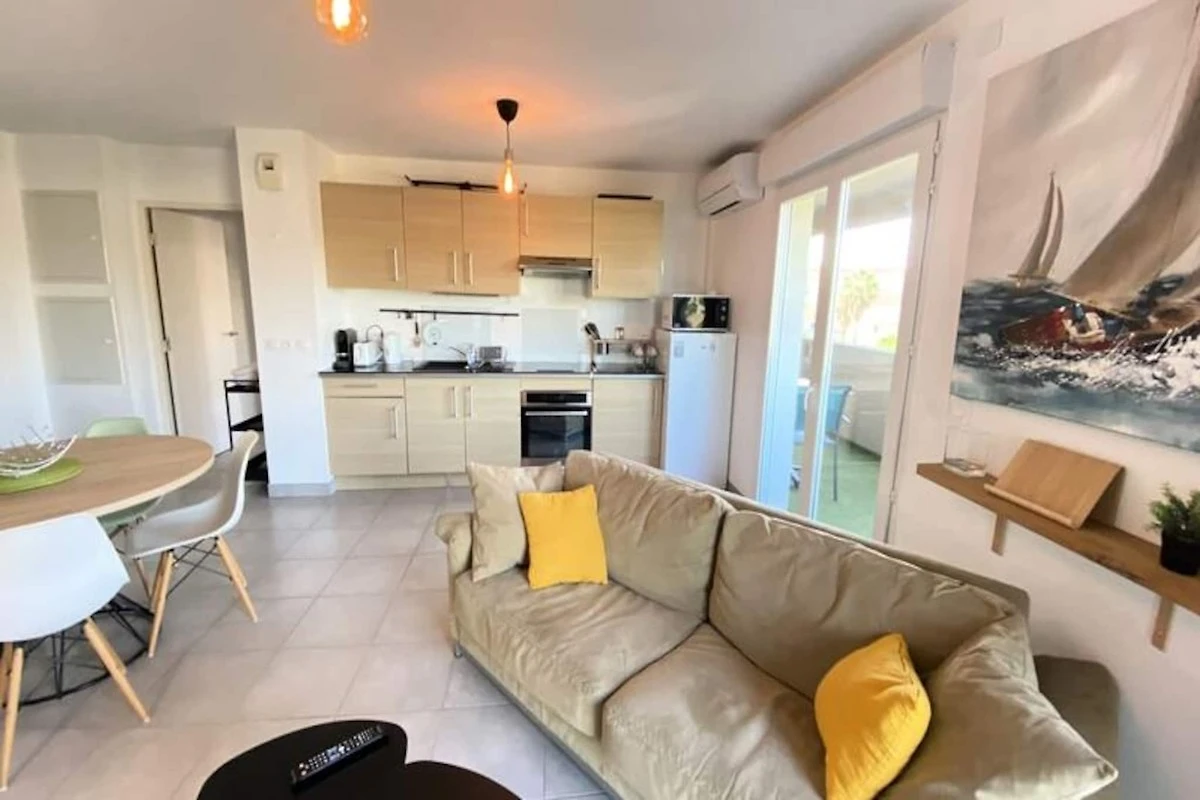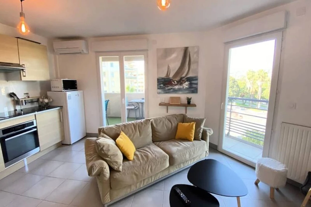Das Apartment liegt nur 300 m vom Exflora Park entfernt und ist ideal für diejenigen, die die Gegend erkunden möchten. Der Strand ist nur 5 Gehminuten entfernt und eignet sich perfekt für einen Tag am Meer. In der Nähe befindet sich ein Supermarkt, in dem Sie bequem einkaufen können, und die Stadt bietet eine Vielzahl lokaler Cafés und Märkte zum Erkunden. Dank der hervorragenden Anbindung an die öffentlichen Verkehrsmittel können Sie nahegelegene Sehenswürdigkeiten bequem erreichen und die lebendige Atmosphäre von Juan-Les-Pins genießen.