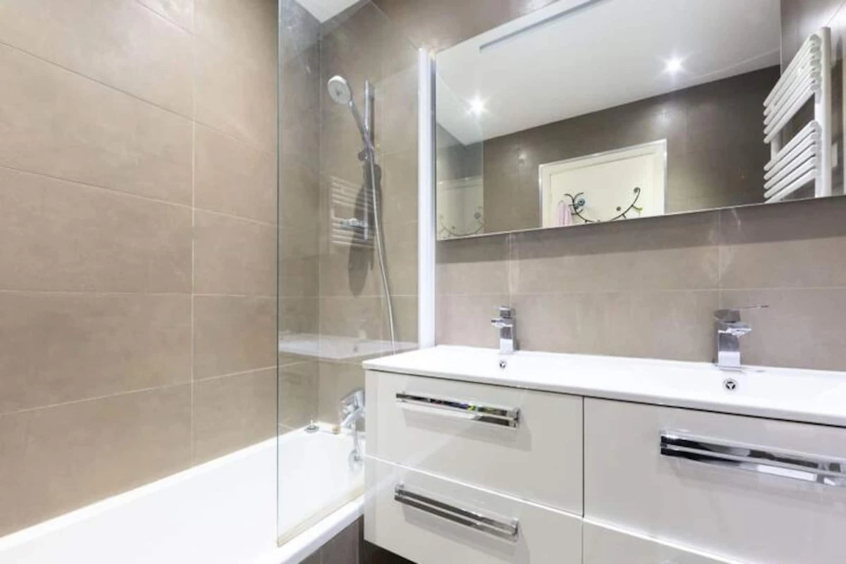 Dieses geräumige Apartment liegt im 12. Stock einer Luxusresidenz in Antibes und bietet einen atemberaubenden Blick auf den Hafen von Vauban, das Meer und die umliegenden Berge. Das Apartment eignet sich sowohl für Familien- als auch für Geschäftsaufenthalte und verfügt über zwei große Schlafzimmer, die jeweils mit Doppelbetten (die auf Anfrage in zwei Einzelbetten getrennt werden können) sowie ein gemütliches Wohnzimmer und einen Essbereich ausgestattet sind. Die Wohnung ist komplett möbliert und verfügt über eine umschaltbare Klimaanlage und WLAN im gesamten Gebäude.
