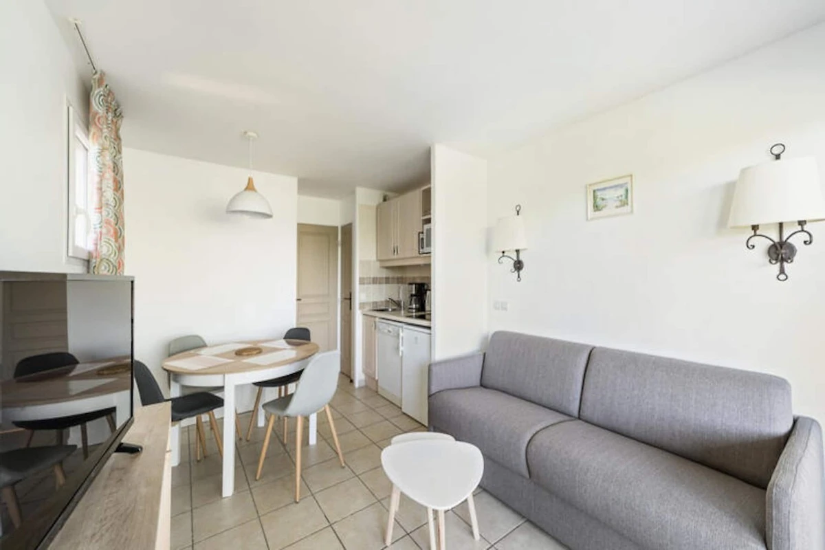 Das Apartment verf�gt �ber einen offenen K�chenbereich, der sich ideal zum Zubereiten von Mahlzeiten eignet, und einen Esstisch f�r vier Personen. F�r Mahlzeiten im Freien ist die Terrasse mit einem Tisch und St�hlen ausgestattet. Zu den weiteren Annehmlichkeiten gehצrt der Zugang zu einem 350 m² gro‗en Swimmingpool, einem kalifornischen Pool und einem Planschbecken, die in den Sommermonaten zur Verf�gung stehen. Der WLAN-Zugang ist gegen Geb�hr verf�gbar und es ist ein Endreinigungsservice erforderlich, der beim Check-in zu zahlen ist.