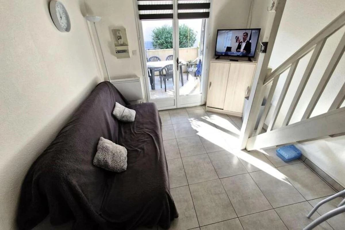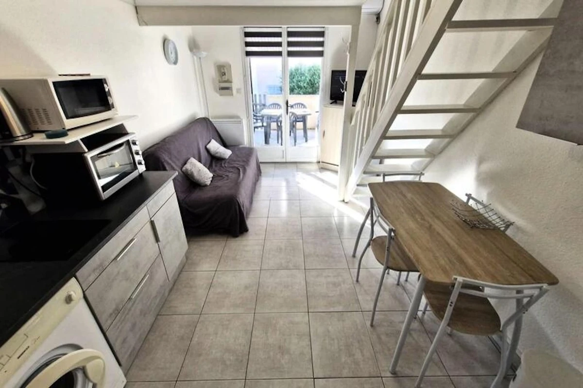 Diese komfortable Mezzanine-Studio-Maisonette-Wohnung bietet einen gemütlichen Rückzugsort für bis zu 4 Personen. Die Aufteilung umfasst ein Zwischengeschoss mit einem Doppelbett und zwei Einzelbetten, die für einen erholsamen Aufenthalt sorgen. Die Unterkunft ist nicht haustierfreundlich und sorgt für eine ruhige und allergenfreie Umgebung. Mit einer Fläche von 26 m² und einer 10 m² großen Terrasse bietet es ausreichend Platz zum Entspannen, ergänzt durch eine Klimaanlage für zusätzlichen Komfort. Dank seiner Lage im Bereich der Meeresseen ist es eine ideale Wahl für Familien oder kleine Gruppen.