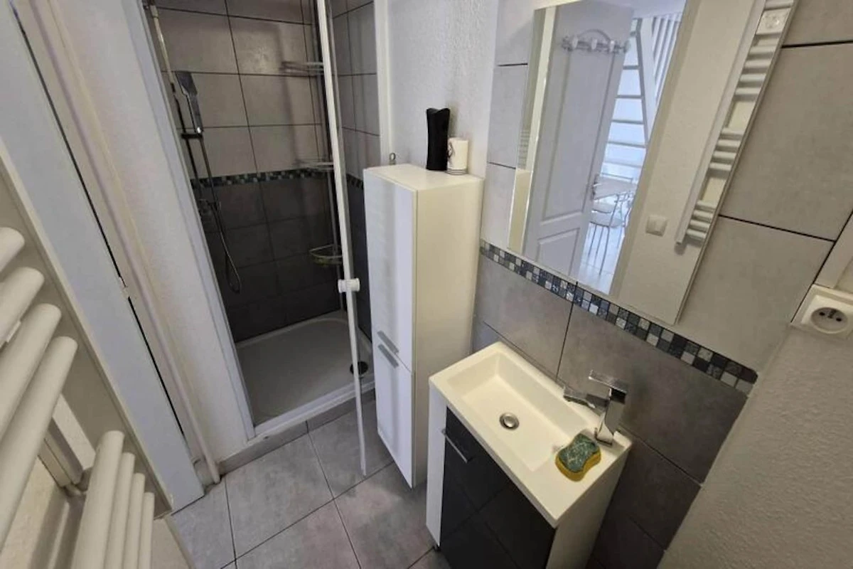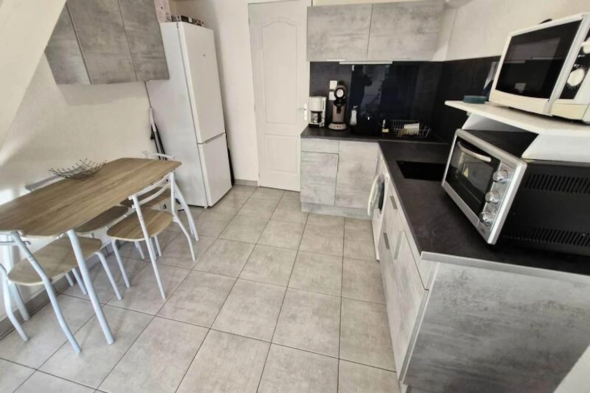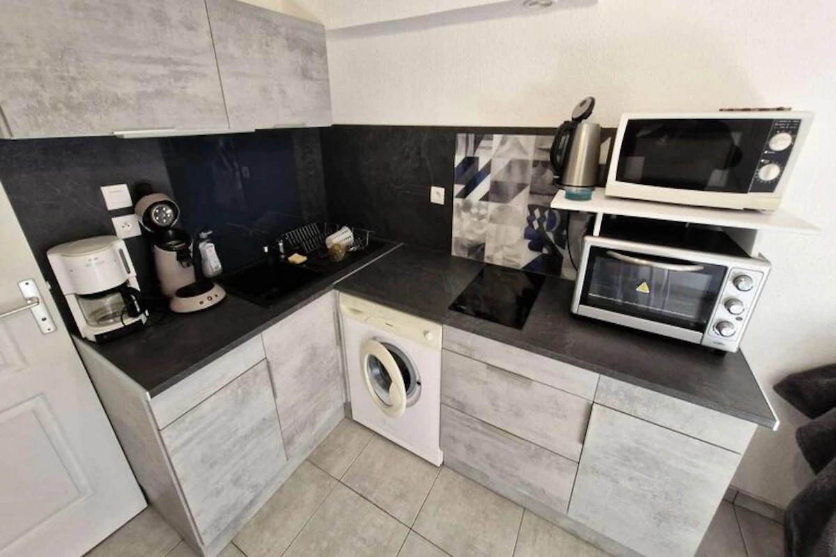 Die Wohnung ist gut ausgestattet und verfügt über eine Reihe von Annehmlichkeiten für einen stressfreien Urlaub. Die Küche verfügt über ein Cerankochfeld, einen Minibackofen, eine Mikrowelle, einen Kühlschrank mit Gefrierfach, eine elektrische Filterkaffeemaschine, eine Senséo-Kaffeemaschine, einen Wasserkocher und einen Toaster, sodass Sie Ihre Lieblingsgerichte ganz einfach zubereiten können. Die mitgelieferte Waschmaschine sorgt für zusätzlichen Komfort, während das Badezimmer über die wichtigsten Einrichtungen verfügt. Ein privater Parkplatz mit Schranke sorgt für sicheres Parken während Ihres Aufenthalts.