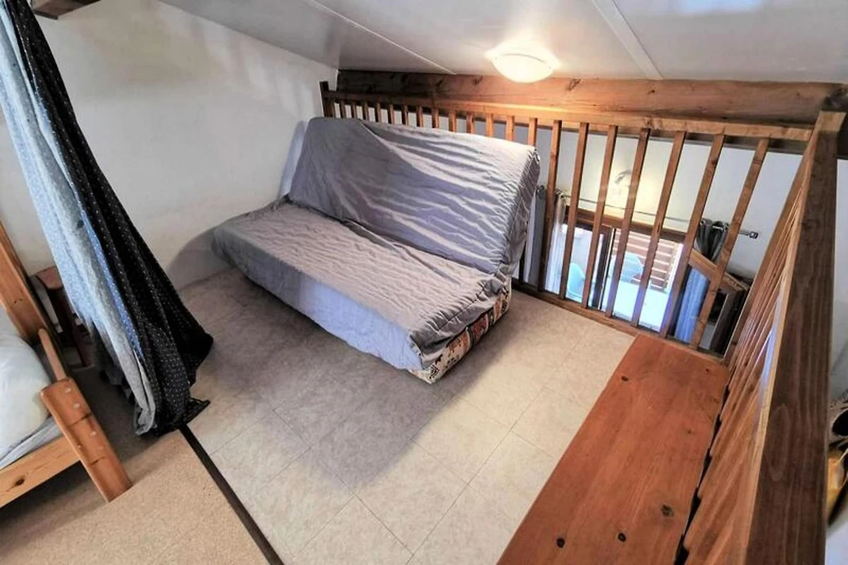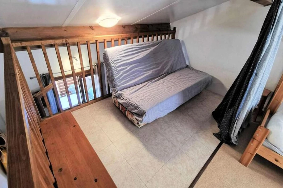Diese Mezzanine-Villa mit zwei Zimmern bietet bequem Platz für bis zu 7 Personen und verfügt über ein Schlafzimmer mit einem Doppelbett und ein Mezzanine mit einem Schlafsofa für zwei Personen und Etagenbetten für eine und zwei Personen. Haustiere sind nicht gestattet, so dass eine friedliche Atmosphäre für alle Gäste gewährleistet ist. Die Villa ist 34 m² groß und verfügt über eine 10 m² große Terrasse, die viel Platz zum Entspannen und Genießen der Natur bietet. Dank der Südausrichtung genießt die Villa viel Sonnenlicht und ist somit ein warmer und einladender Rückzugsort. Die Lage ist ideal, nur 200 Meter vom Strand und 300 Meter vom Zentrum entfernt.