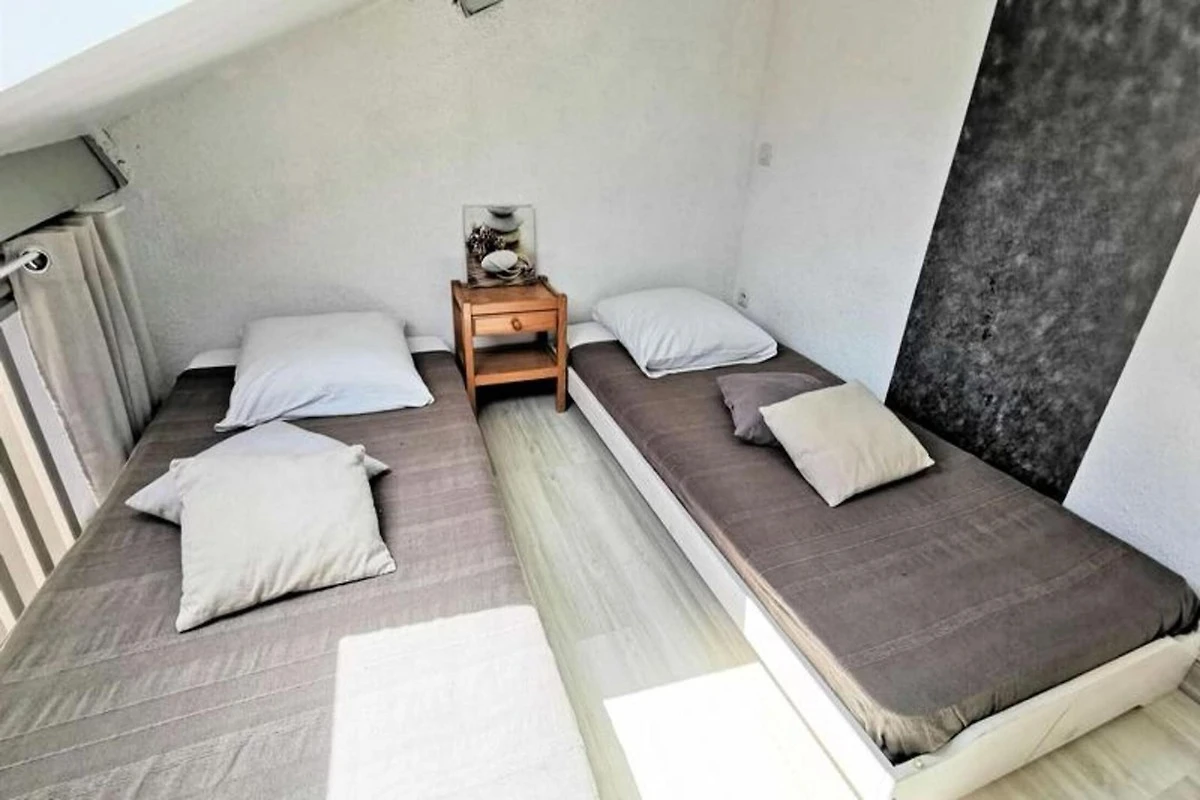 Dieses prächtige renovierte Studiohaus im Zwischengeschoss bietet Platz für bis zu 5 Personen und bietet einen komfortablen Wohnraum mit modernen Annehmlichkeiten. Das Wohnzimmer verfügt über ein 130 cm breites Schlafsofa für eine Person, während die beiden Schlafzimmer im Obergeschoss über ein Doppelbett und zwei Einzelbetten im anderen verfügen. Das Haus ist nicht haustierfreundlich, sodass allen Gästen eine ruhige Umgebung geboten wird. Durch die Südausrichtung sorgt es für viel Tageslicht und eine entspannte Atmosphäre.