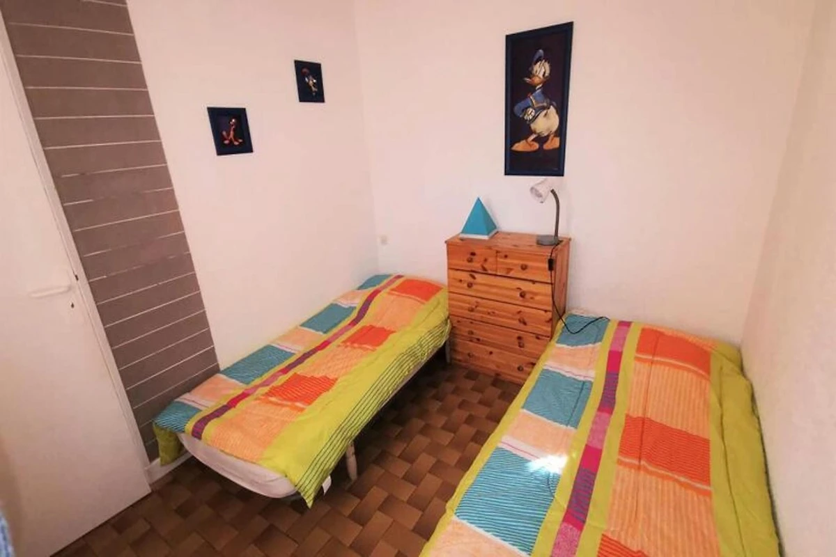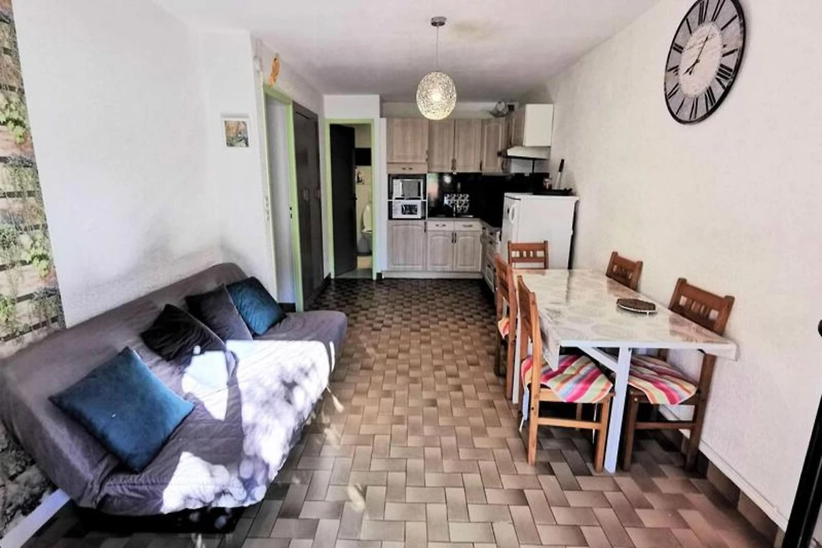 Diese geräumige Dreizimmerwohnung, ideal für bis zu 6 Personen, befindet sich im Erdgeschoss und verfügt über ein Wohnzimmer mit einem Schlafsofa für zwei Personen, ein Schlafzimmer mit einem Doppelbett und ein zweites Schlafzimmer mit zwei getrennten Einzelbetten durch eine herausnehmbare Trennwand für Privatsphäre. Das Anwesen ist nicht haustierfreundlich und sorgt für eine ruhige und entspannte Atmosphäre. Mit einer Terrasse von 14 m² und Südausrichtung können Sie den ganzen Tag über die Sonne genießen.
