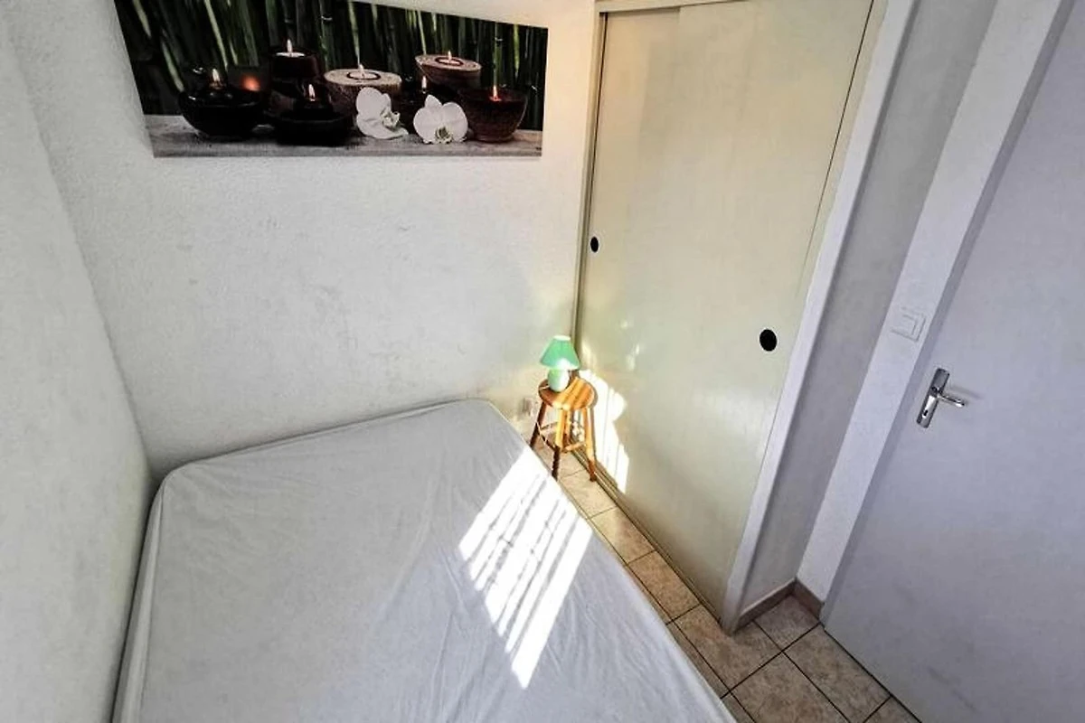 Dieses Dreizimmerapartment ist der perfekte Rückzugsort für bis zu vier Gäste und bietet komfortable Unterkünfte sowie ein Wohnzimmer mit einem ausziehbaren Sofa für zwei Personen. Es verfügt über zwei gemütliche Schlafzimmer mit jeweils einem Doppelbett, ideal für erholsame Nächte. Das Apartment befindet sich im ersten Stock (ohne Aufzug) und ist nicht haustierfreundlich, sodass eine ruhige Umgebung gewährleistet ist. Die Wohnung verfügt über eine Gesamtfläche von 30 m², wobei eine 6 m² große Terrasse einen angenehmen Außenbereich bietet.