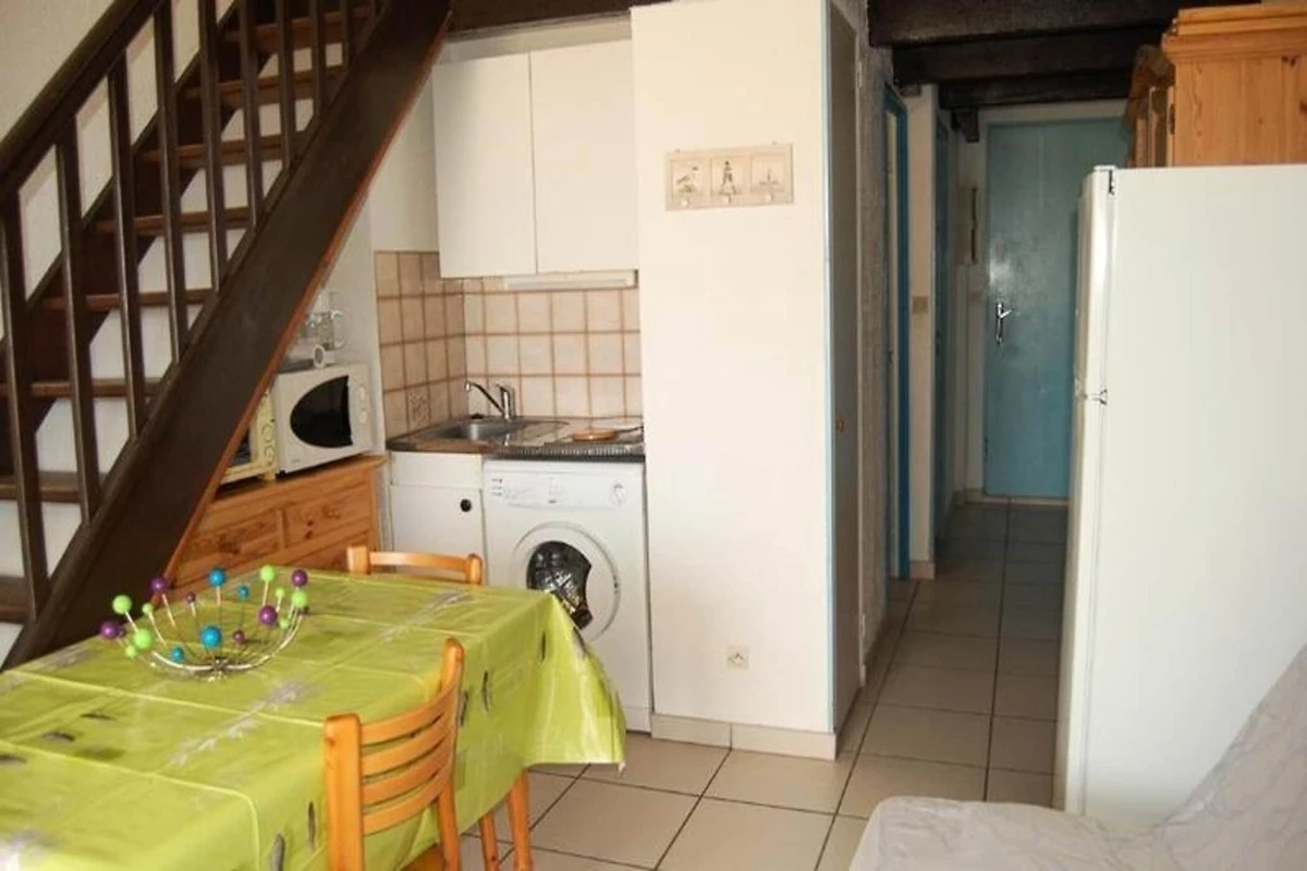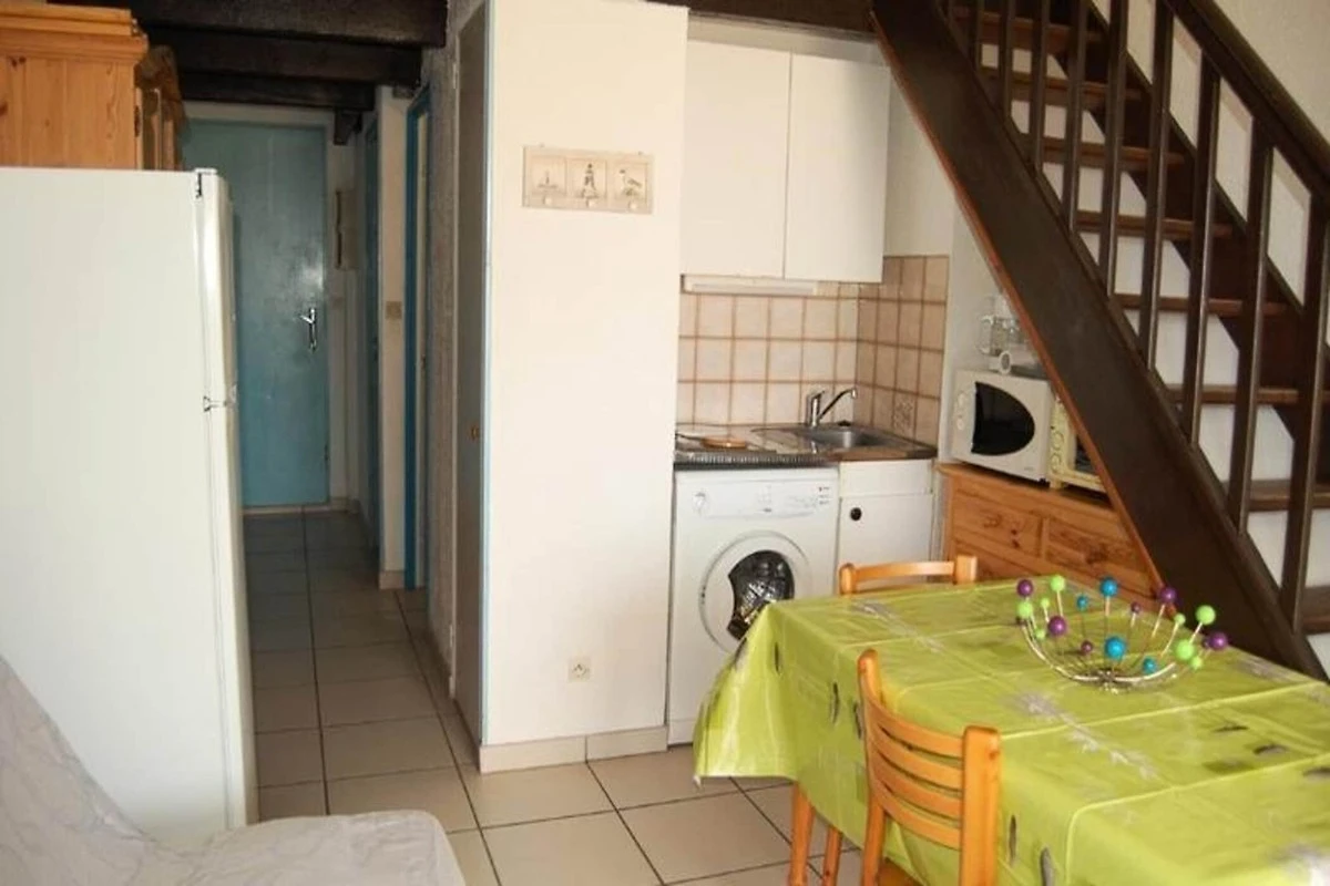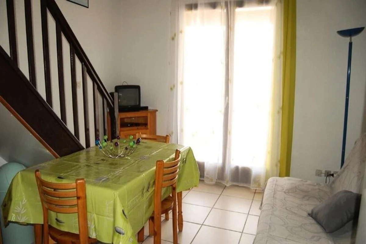 Diese charmante Mezzanine-Villa mit drei Zimmern bietet einen perfekten Küstenurlaub für bis zu sechs Gäste. Es verfügt über ein Schlafzimmer mit einem Doppelbett, ein zweites Schlafzimmer mit Etagenbett und ein Zwischengeschoss mit einem zusätzlichen Doppelbett, was es ideal für Familien oder kleine Gruppen macht. Die Unterkunft ist nicht haustierfreundlich und gewährleistet allen Gästen eine ruhige und saubere Umgebung. Mit einer Fläche von 42 m² und einer großzügigen Terrasse von 18 m² haben Sie viel Platz zum Entspannen und können dabei den Blick nach Osten auf das Meer genießen.