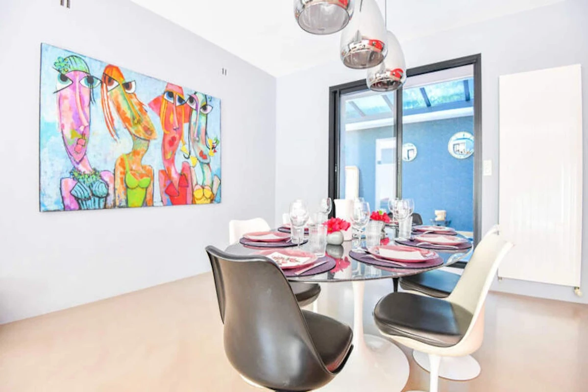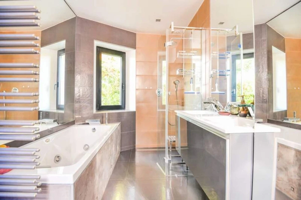 Diese atemberaubende, von einem Architekten entworfene Villa liegt in den ruhigen Höhen von Roucas Blanc in Marseille und bietet ein außergewöhnliches Urlaubserlebnis mit hochwertiger Ausstattung und sorgfältigem Design. Mit einem privaten Swimmingpool, einem Solarium und einem atemberaubenden Blick auf das Mittelmeer und die Basilika Notre-Dame de la Garde ist diese Villa eine ideale Wahl für diejenigen, die sowohl Luxus als auch Komfort suchen. Das großzügige 200 m² große Anwesen umfasst 4 wunderschön eingerichtete Schlafzimmer, 2 moderne Badezimmer und eine voll ausgestattete Küche. Die Wohnbereiche sind geschmackvoll mit hochwertigen Möbeln gestaltet und die Villa verfügt über alle modernen Annehmlichkeiten, darunter eine umschaltbare Klimaanlage, eine Plancha, eine Waschmaschine und einen Trockner.