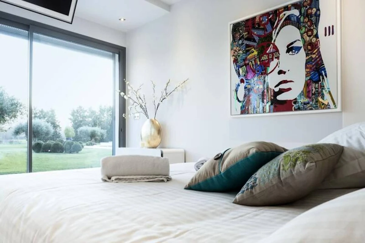 Die Villa bietet eine gepflegte und freundliche, moderne Einrichtung und verfügt über fünf Schlafzimmer mit eigenem Bad, von denen eines den Kindern gewidmet ist. Alles klimatisiert.