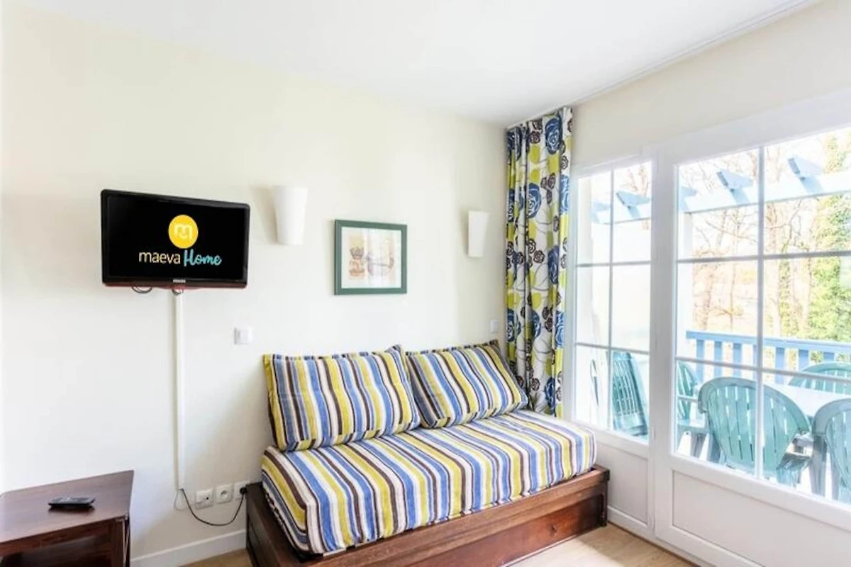 Dieses charmante Apartment bietet einen ruhigen Rückzugsort mit komfortablen Annehmlichkeiten, ideal für Familien oder Gruppen. Es verfügt über ein gemütliches Wohnzimmer mit Schlafsofas, ein Schlafzimmer mit einem Doppelbett und einen Kabinenbereich mit Etagenbetten und bietet Platz für bis zu 7 Gäste. Die Wohnung verfügt über zwei Badezimmer, zwei Toiletten und einen Balkon mit Blick auf den Fluss Dordogne und einer ruhigen Aussicht. Haustiere sind gegen eine zusätzliche Gebühr erlaubt, sodass Ihre vierbeinigen Freunde einen erholsamen Urlaub mit Ihnen verbringen können. Bettwäsche- und Reinigungsservice sind gegen Aufpreis verfügbar.