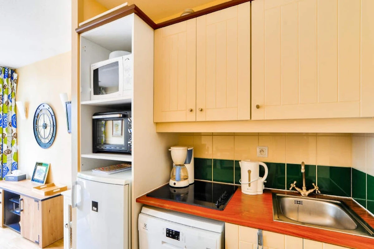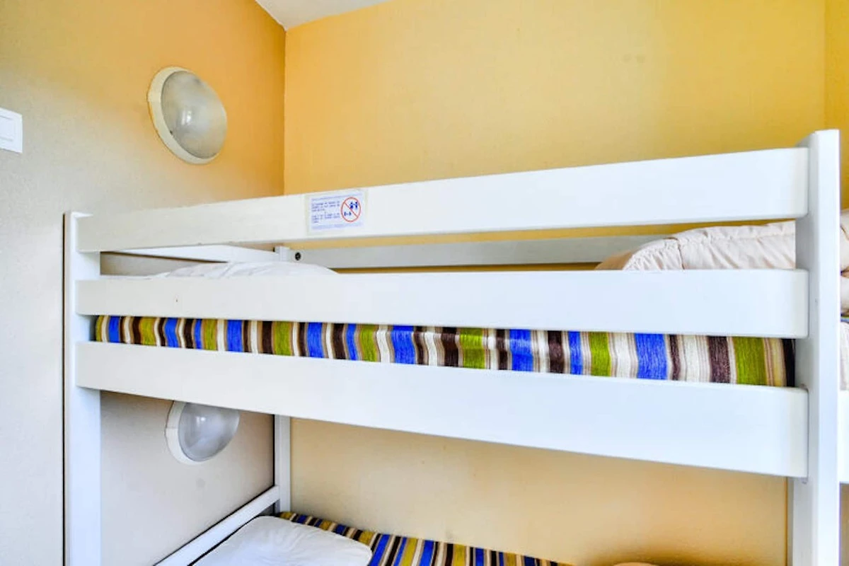 Dieses charmante Maisonette-Apartment ist ideal für Familien oder Gruppen und bietet Platz für bis zu 6 Personen mit einem Doppelbett im Schlafzimmer und 2 Etagenbetten im Kabinenbereich. Es verfügt über 2 Badezimmer, eines mit Dusche und das andere mit Badewanne, die für Komfort während Ihres Aufenthalts sorgen. Die Unterkunft ist gegen eine zusätzliche Gebühr haustierfreundlich und umfasst Parkplätze und Zugang zu einem beheizten Außenpool (geöffnet von April bis September). Weitere Annehmlichkeiten wie Bettwäsche und WLAN sind auf Anfrage und gegen Aufpreis erhältlich.