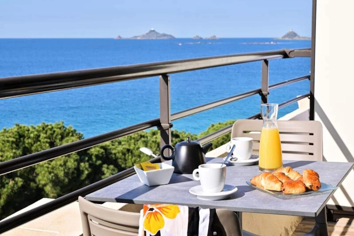 Diese charmante Ferienresidenz bietet elegante Unterk�nfte f�r bis zu 4 Gהste. Das Apartment verf�gt �ber ein Schlafzimmer mit einem 160 x 190 cm gro�en Doppelbett und ein Wohnzimmer mit einem Doppelschlafsofa. Es verf�gt �ber eine voll ausgestattete K�che, kostenfreies WLAN, eine Klimaanlage und einen Flachbild-TV. Ein privater Balkon oder eine Terrasse mit Gartenmצbeln bietet einen atemberaubenden Blick auf den Golf von Ajaccio und die Sanguinaires-Inseln. Haustiere sind gegen eine geringe Geb�hr willkommen und es ist eine Kaution in Hצhe von 300 € erforderlich.