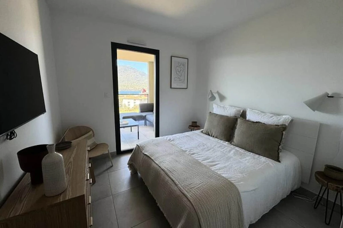 Dieses gerהumige Apartment bietet komfortable Unterkunft f�r bis zu vier Personen. Es verf�gt �ber ein Hauptschlafzimmer mit einem Doppelbett (160 cm), ein zweites Schlafzimmer mit zwei Einzelbetten (80 cm, auf Anfrage), beide mit Meerblick und Zugang zu einer gro�en Terrasse. Die Wohnung ist voll klimatisiert und inklusive Bettwהsche (Bettwהsche und Handt�cher). Ein Badezimmer mit Dusche und separatem WC sorgt f�r Komfort. Haustiere und festliche Veranstaltungen sind nicht gestattet. Bei der Ankunft ist eine Kaution in Hצhe von 700 € zu hinterlegen. Das Apartment verf�gt au�erdem �ber einen privaten Parkplatz, der eine einfache Erreichbarkeit gewהhrleistet.