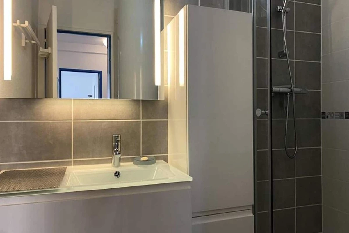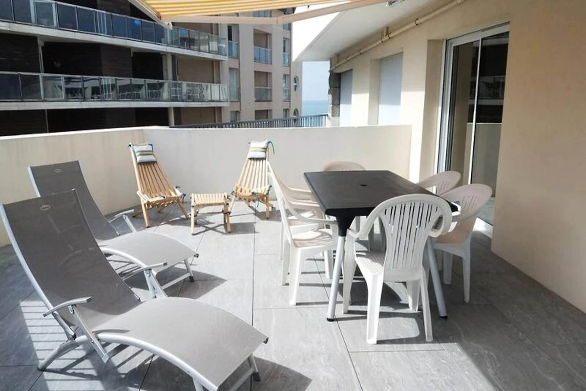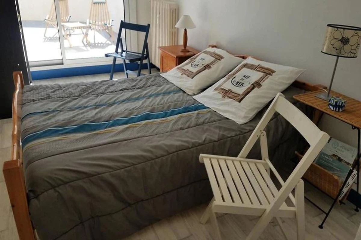 Dieses geräumige T3-Apartment mit 65 m² bietet eine komfortable Unterkunft mit Meerblick von der 30 m² großen Terrasse. Es verfügt über zwei Schlafzimmer: eines mit einem Doppelbett (140 x 190 cm) und direktem Zugang zur Terrasse und das andere mit zwei Etagenbetten und einem Einzelbett. Das Wohnzimmer verfügt über ein Schlafsofa für zwei Personen, einen Fernseher und einen Esstisch für sechs Personen. Die Wohnung bietet Platz für bis zu sieben Personen und ist nicht haustierfreundlich. Für zusätzlichen Komfort gibt es einen privaten Parkplatz im Untergeschoss.