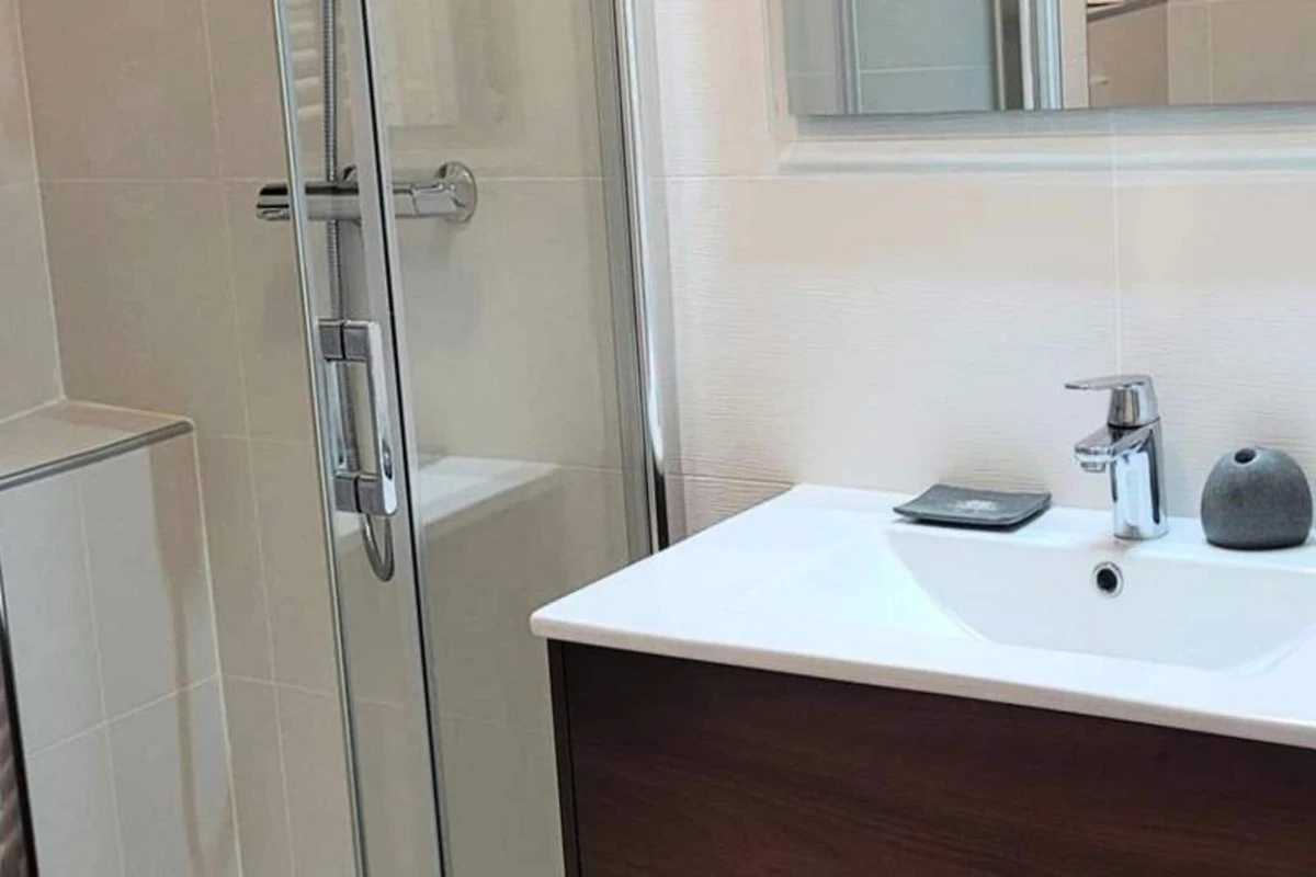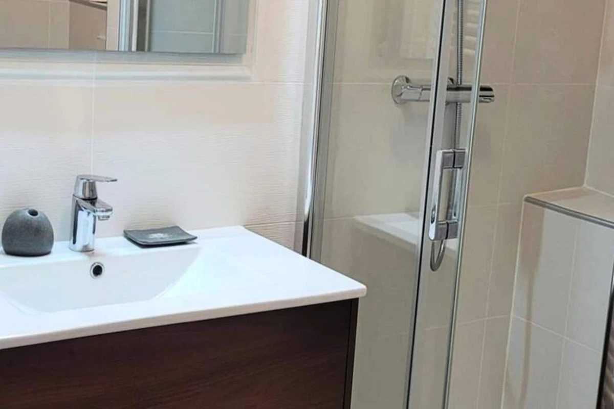 Die Wohnung ist mit einer voll funktionsfähigen offenen Küche ausgestattet, die eine Mikrowelle, ein Induktionskochfeld, einen Kühlschrank, eine Kaffeemaschine, einen Wasserkocher, einen Toaster, einen Geschirrspüler und einen Backofen umfasst, sodass Sie Ihre Mahlzeiten problemlos zubereiten können. Das Badezimmer verfügt über eine Dusche, ein Waschbecken, einen Handtuchhalter und ein WC sowie eine Waschmaschine für zusätzlichen Komfort. Optionale Dienstleistungen wie Zimmerreinigung, Bettwäscheverleih, ein Babybett und WLAN-Ausstattung stehen zur Verfügung und sorgen für einen komfortablen und angenehmen Aufenthalt für alle Gäste.