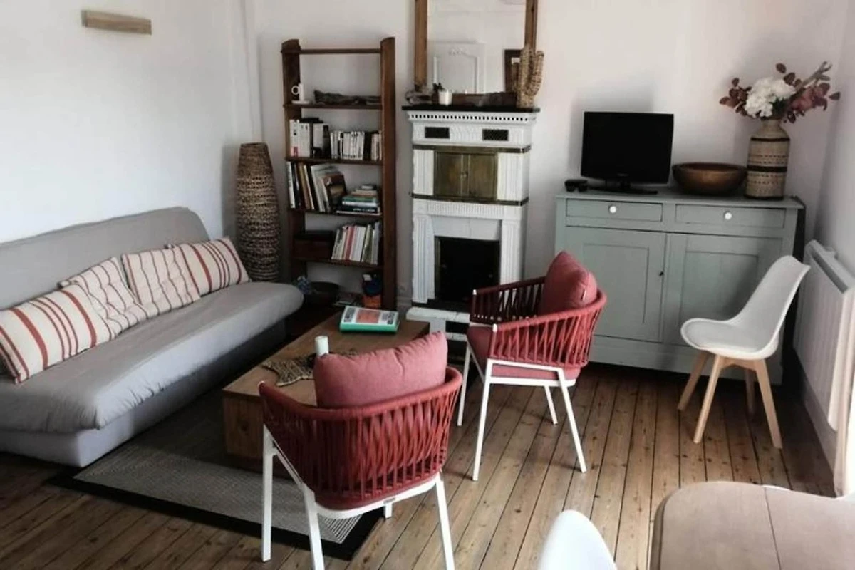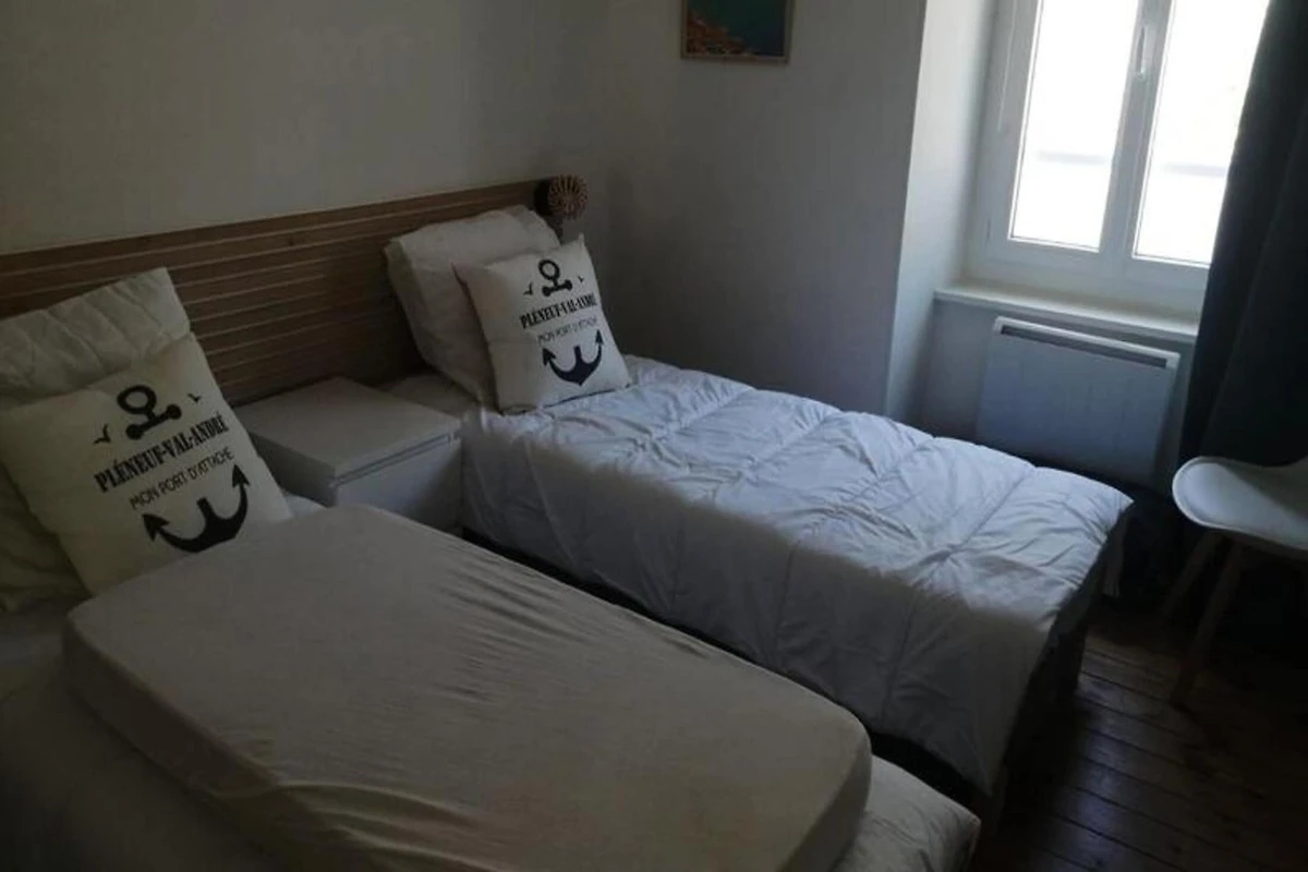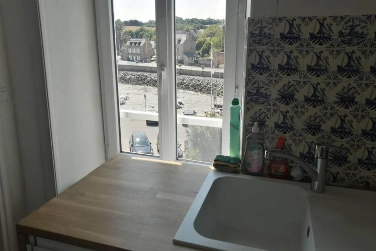 Dieses 40 m² große Apartment am malerischen Hafen von Dahouet bietet Platz für bis zu vier Gäste mit einem 140 x 190 cm großen Schlafsofa im Wohnzimmer und zwei 90 x 190 cm großen Einzelbetten im Schlafzimmer. Richtlinien für Haustiere sind nicht angegeben. Die Wohnung befindet sich im 2. Stock eines Gebäudes ohne Aufzug.