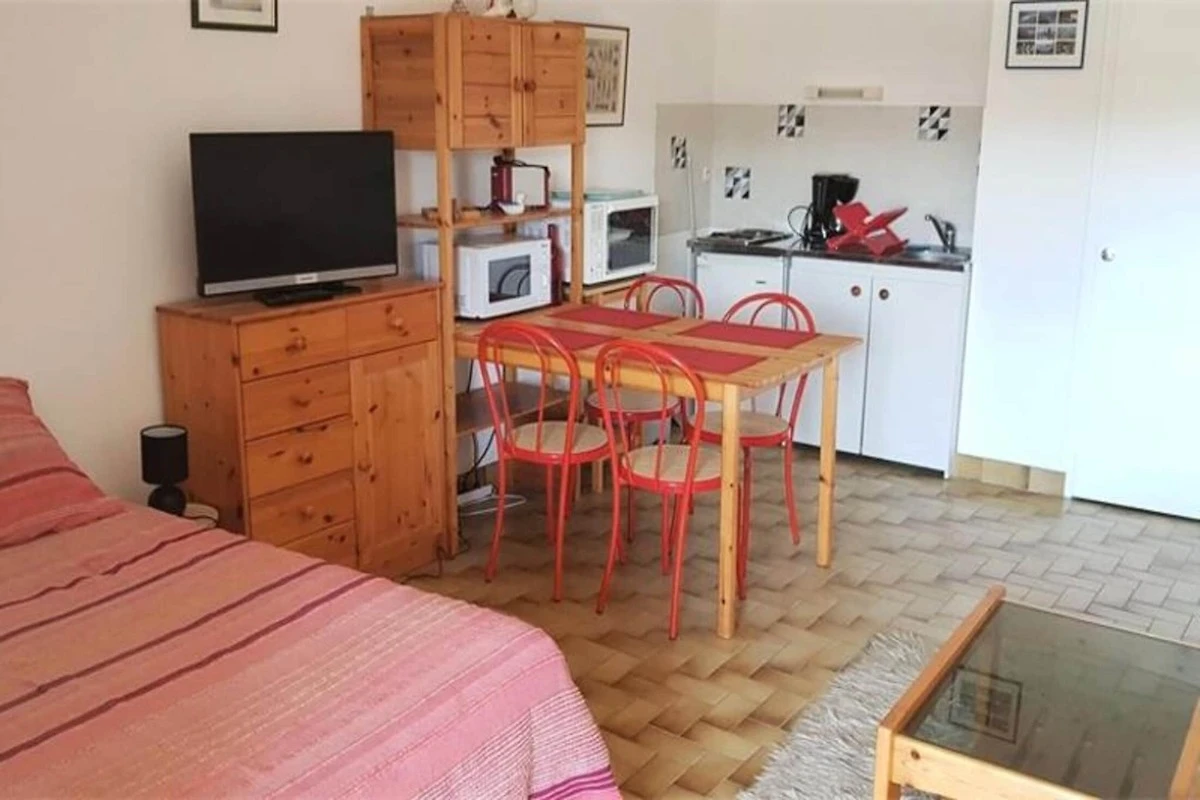 Das Studio verfügt über eine offene und voll ausgestattete Küche mit Backofen, Mikrowelle, Elektroherd und Kühlschrank, sodass die Zubereitung von Mahlzeiten zum Kinderspiel wird. Das Badezimmer verfügt über eine Badewanne, ein Waschbecken und ein WC für zusätzlichen Komfort. Optionale Dienstleistungen wie Zimmerreinigung, Wäscheverleih und Babyausstattung runden Ihren Aufenthalt ab und sorgen für ein entspanntes und sorgenfreies Erlebnis am Meer.