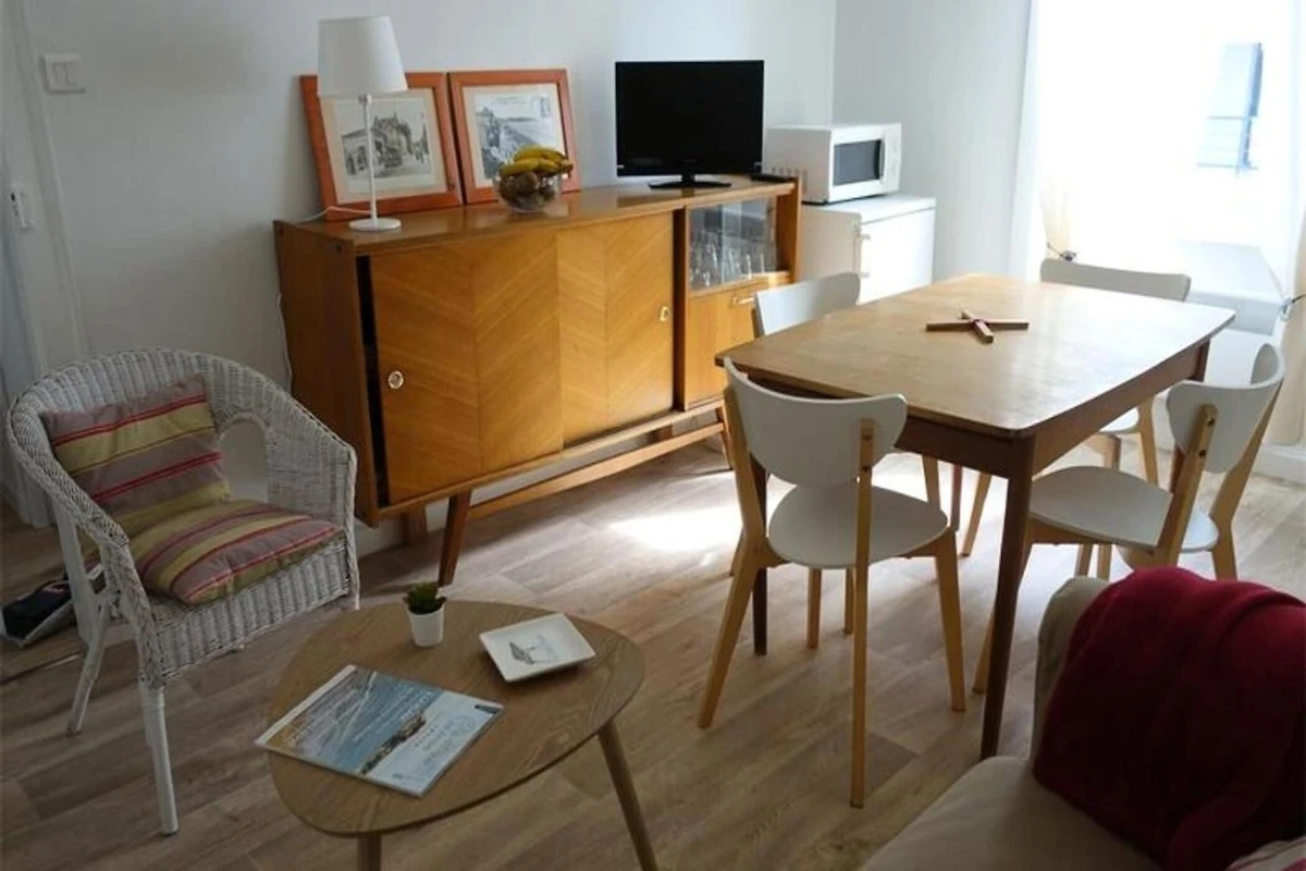 Diese charmante 42 m² gro�e T3-Wohnung befindet sich im ersten Stock einer Residenz ohne Aufzug und bietet einen gem�tlichen und funktionalen Raum f�r bis zu 4 Gהste. Das Apartment verf�gt �ber zwei Schlafzimmer mit jeweils einem bequemen 140 x 190 cm gro�en Doppelbett sowie ein Wohnzimmer mit Sofa, Sesseln, TV und einem Esstisch f�r 4 Personen. Haustiere sind nicht gestattet und WLAN ist auf Anfrage und gegen Aufpreis verf�gbar. Zu den optionalen Leistungen gehצren die Haushaltsreinigung, der Wהscheverleih und ein Reisebett f�r Familien mit kleinen Kindern.