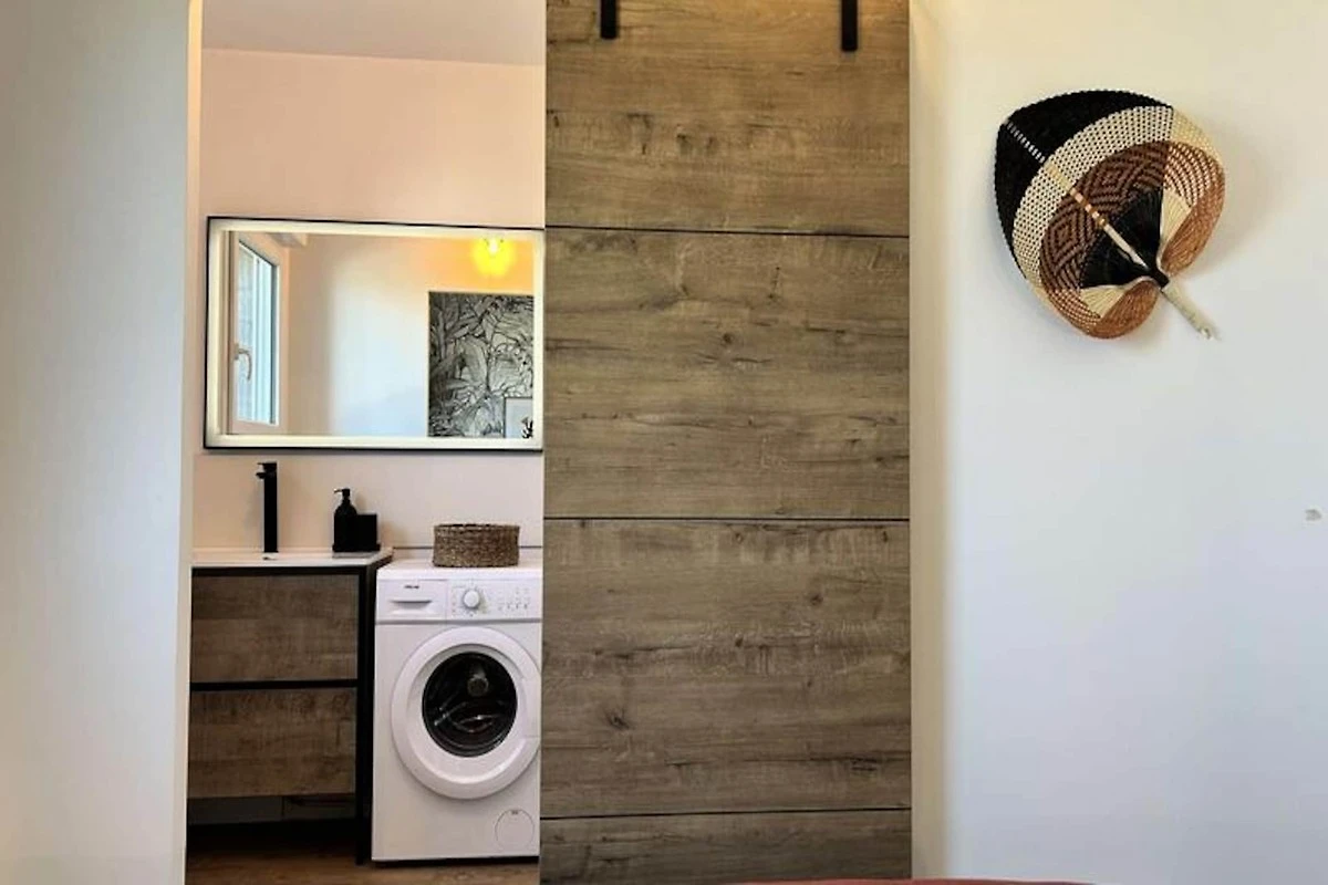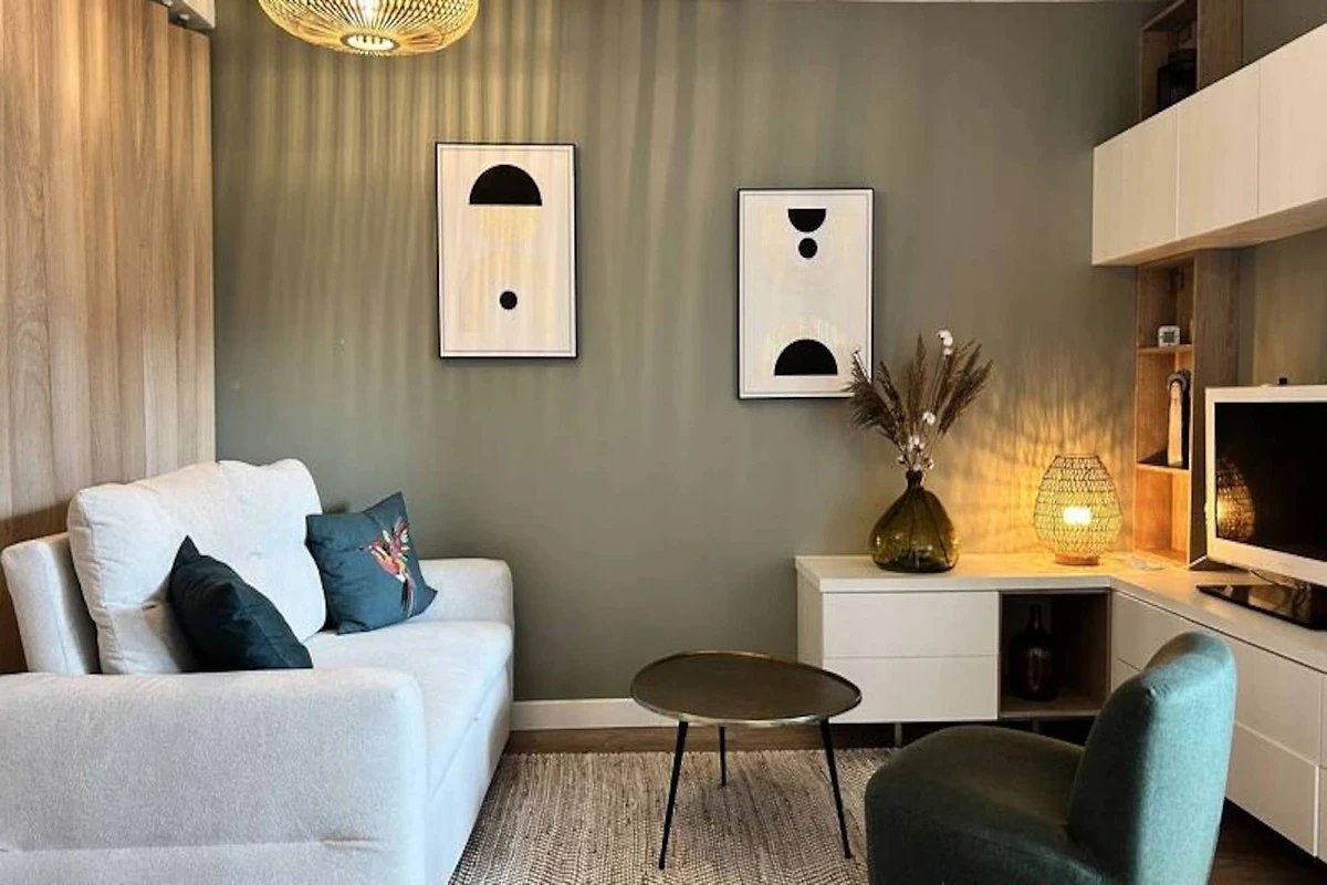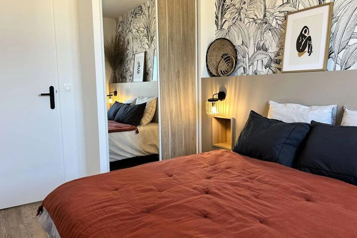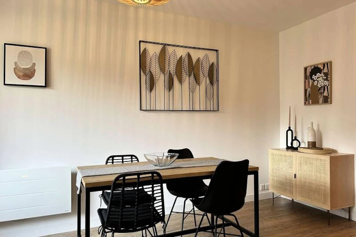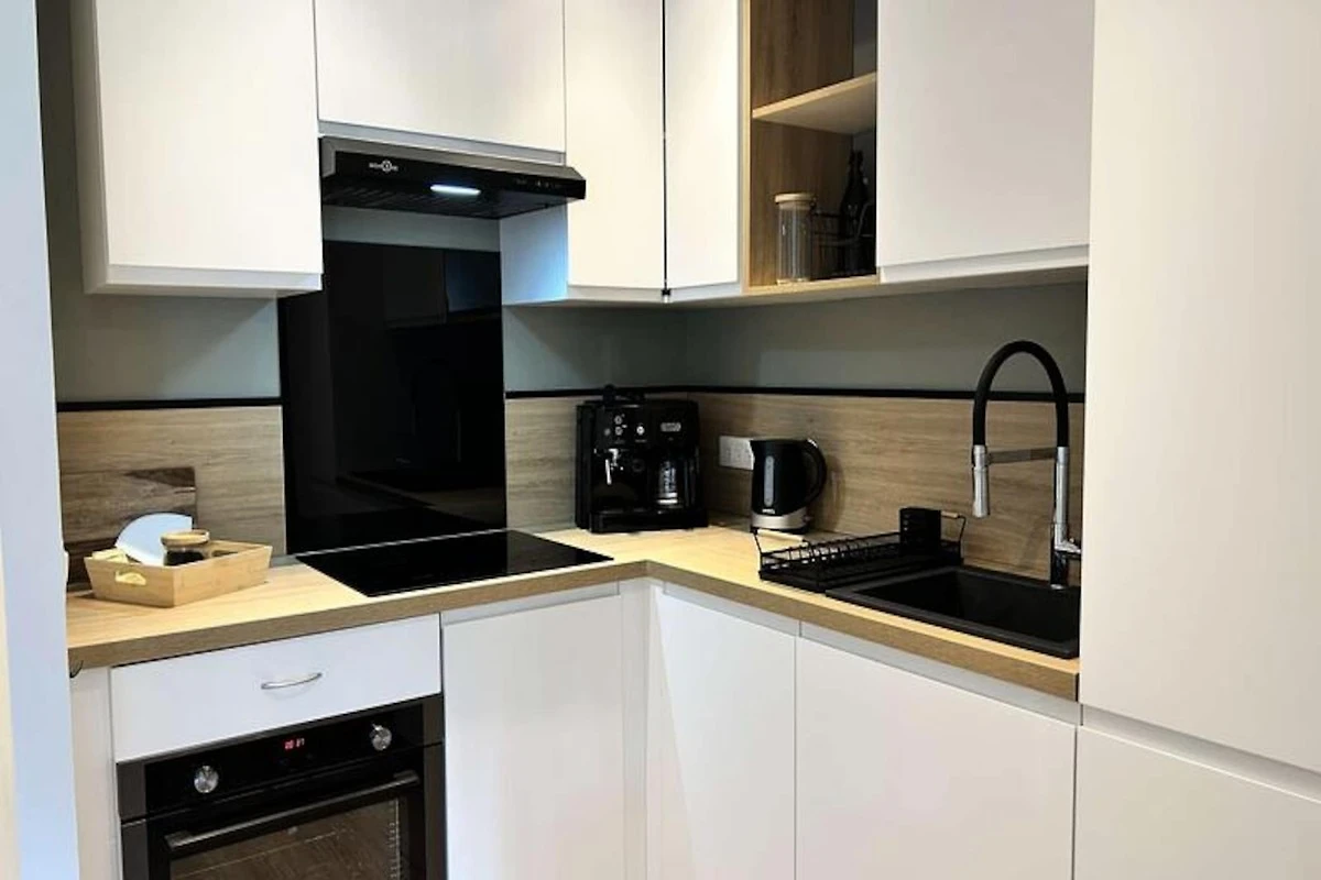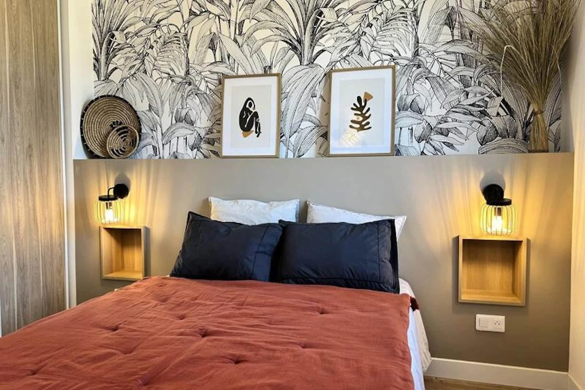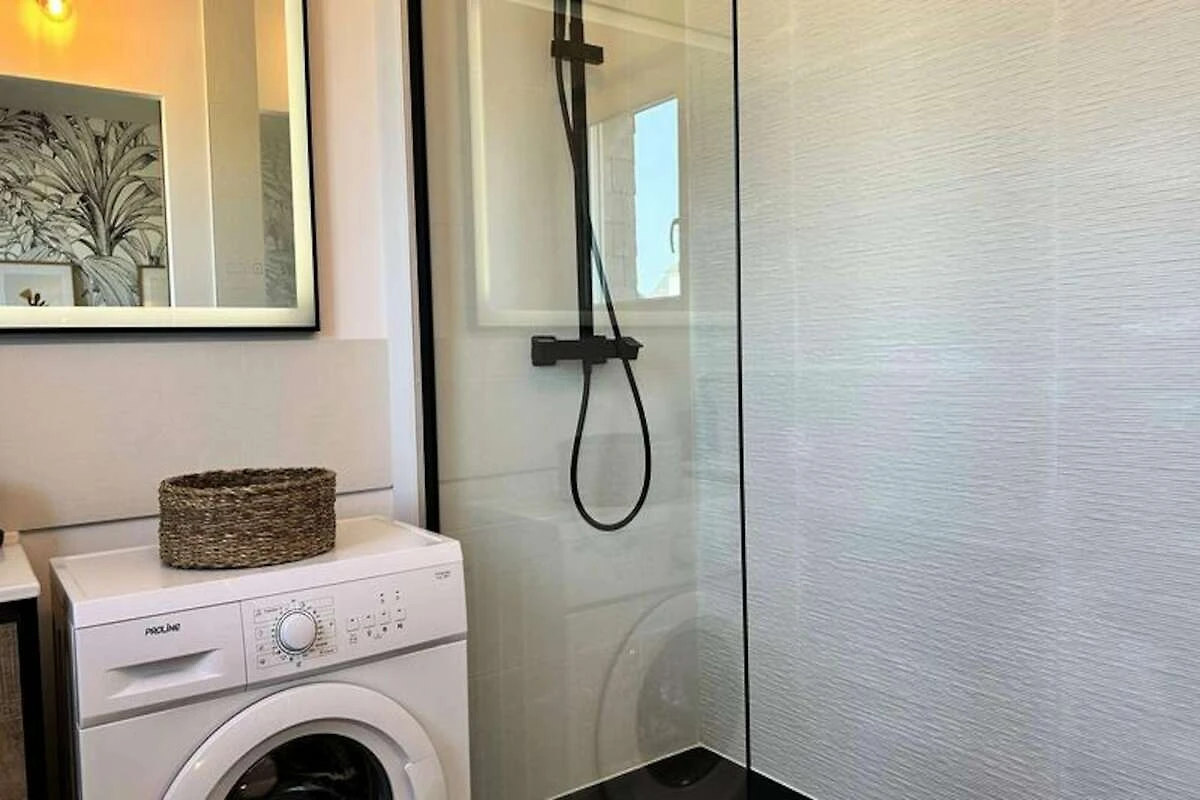Tauchen Sie ein in den charmanten Küstenort Erquy mit diesem wunderschön renovierten Apartment. Erquy ist ein malerischer Küstenort, bekannt für seine traumhaften Strände und sein lebendiges Flair. Nur 250 Meter vom Strand und dem pulsierenden Stadtzentrum entfernt, bietet dieses gemütliche Refugium in einer privaten Residenz die perfekte Kombination aus Komfort und Ruhe. Ob Sie zu den Geschäften bummeln oder die goldenen Sandstrände von Centre und Caroual genießen möchten – alles, was Sie für einen unvergesslichen Urlaub brauchen, befindet sich direkt vor Ihrer Tür. \n\nDieses charmante Zweizimmer-Apartment im ersten Stock der Residenz empfängt Sie mit einer warmen und einladenden Atmosphäre. Das Wohnzimmer verfügt über eine komfortable Sitzecke mit Sofa, Sessel, Fernseher und Gesellschaftsspielen und öffnet sich zu einem charmanten Balkon, auf dem Sie Ihren Morgenkaffee oder ein Glas Wein am Abend genießen können. Ein Esstisch für vier Personen und eine voll ausgestattete offene Küche laden zum gemeinsamen Kochen und Genießen ein. Die Küche ist modern ausgestattet, unter anderem mit einem 3-Platten-Induktionskochfeld, Backofen, Kühl-/Gefrierkombination, Geschirrspüler und Nespresso-Kaffeemaschine – alles, was Sie für einen komfortablen Aufenthalt benötigen. \n\nDas separate Schlafzimmer mit Doppelbett bietet einen ruhigen Rückzugsort. Das Badezimmer verfügt über Dusche, Waschbecken und Waschmaschine. WLAN ist verfügbar (abhängig von der 4G-Netzabdeckung). Gäste profitieren von einem sicheren Tiefgaragenstellplatz im Gebäude. Bettwäsche, Handtücher und Geschirrtücher werden gestellt. Optional ist eine Endreinigung buchbar. \n\nDank seiner unschlagbaren Lage und der durchdachten Ausstattung ist dieses Apartment der ideale Ausgangspunkt, um die Naturschönheiten von Erquy zu entdecken, frische Meeresfrüchte in lokalen Restaurants zu genießen oder einfach am Meer zu entspannen. Schaffen Sie unvergessliche Erinnerungen in diesem charmanten Küstenparadies, wo der Rhythmus der Gezeiten die perfekte Atmosphäre für Entspannung und Abenteuer schafft.