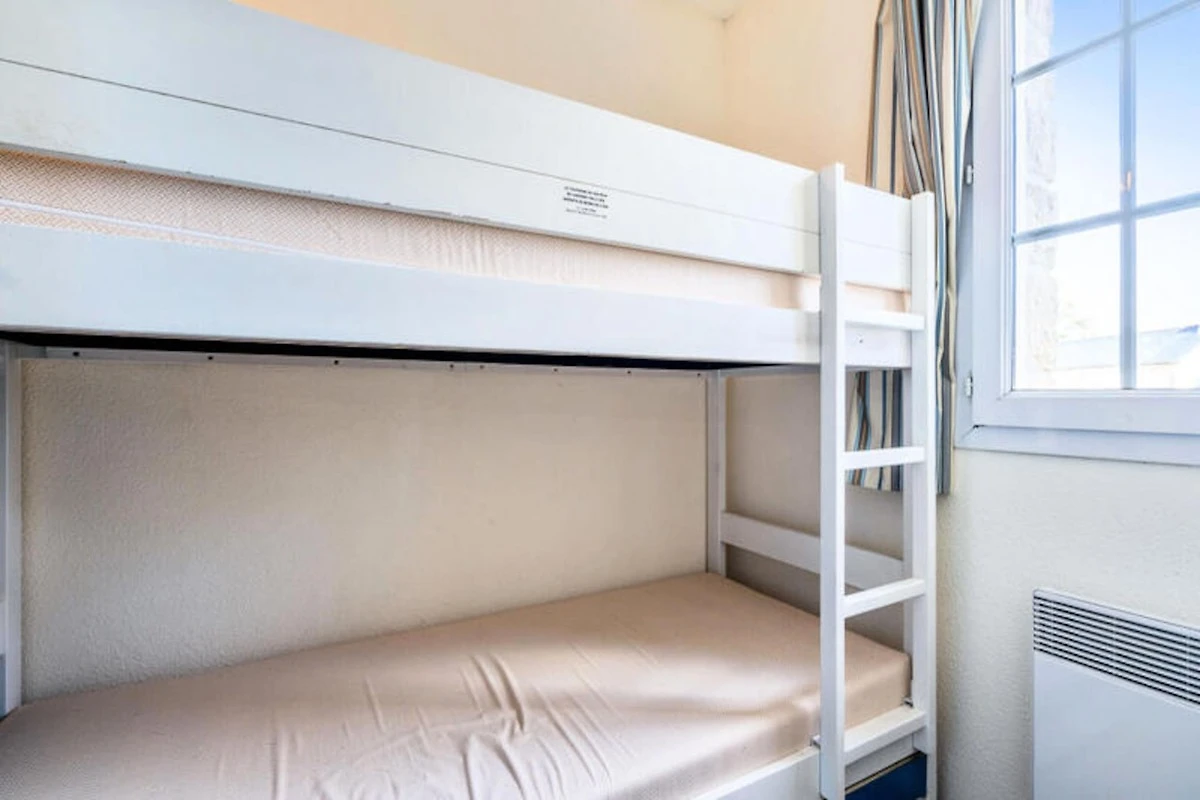 Genie�en Sie f�r ein Wochenende oder einen Urlaub in der Bretagne einen Aufenthalt in diesem charmanten Apartment, nur 10 Meter vom Strand entfernt. Das Apartment befindet sich in einer Residenz mit f�nf traditionellen bretonischen Gebהuden und bietet Platz f�r bis zu 7 Gהste. Es verf�gt �ber zwei Schlafzimmer und zwei Badezimmer, ideal f�r Familien oder Gruppen. Haustiere sind gegen eine zusהtzliche Geb�hr willkommen, was es zu einer guten Wahl f�r diejenigen macht, die mit Tieren reisen. Die Gהste finden alles, was sie f�r einen komfortablen Aufenthalt benצtigen, mit einer ruhigen Atmosphהre und modernen Annehmlichkeiten.