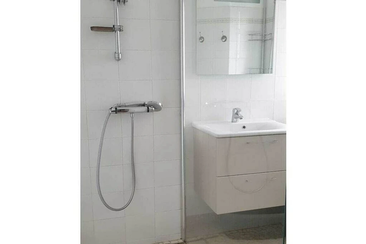 Badezimmer: italienische Dusche, Waschbecken, Waschmaschine, separates WC+Waschbecken.