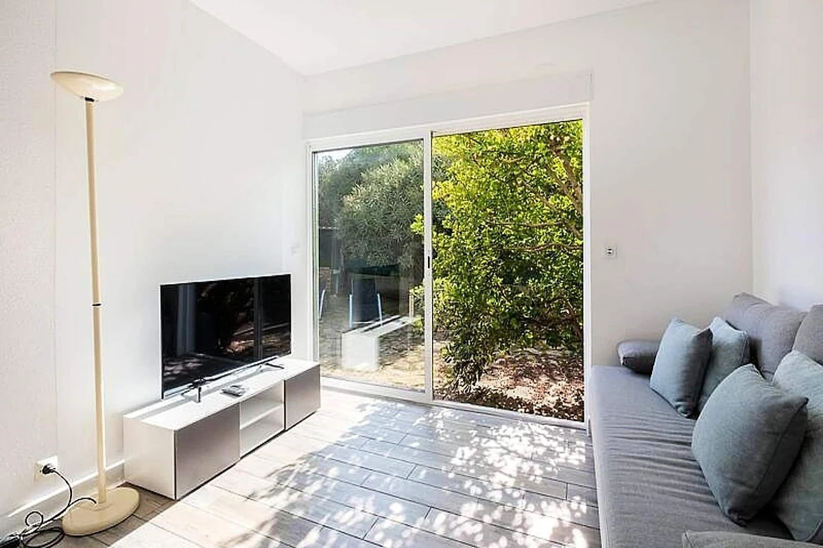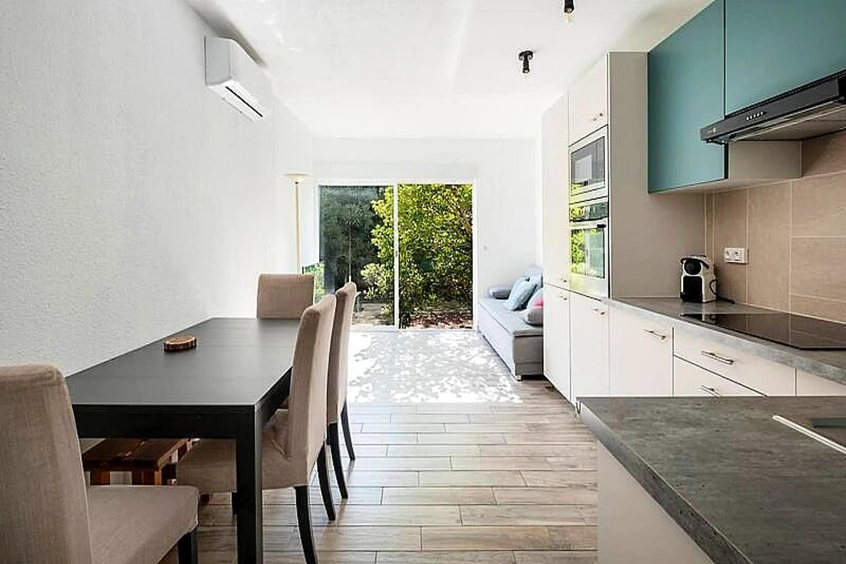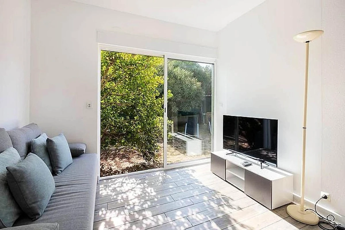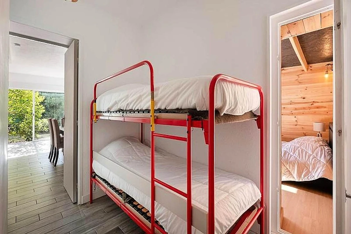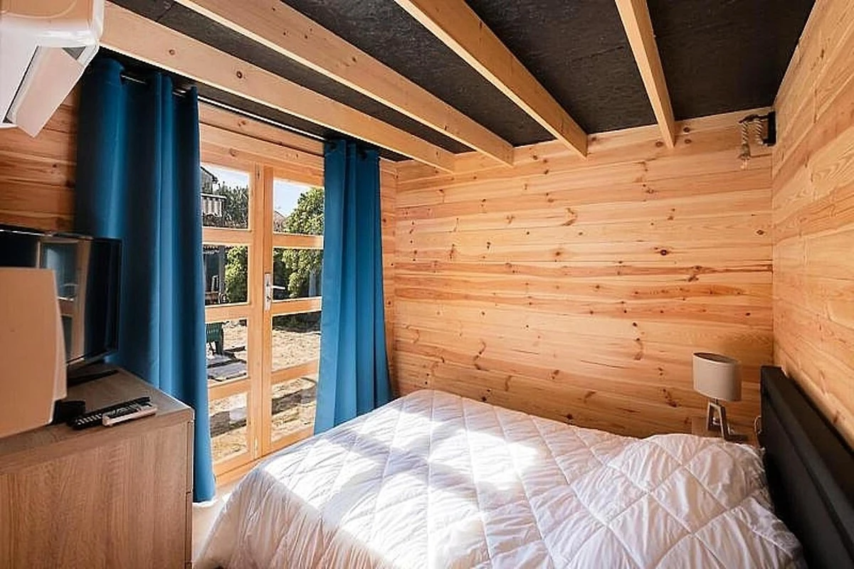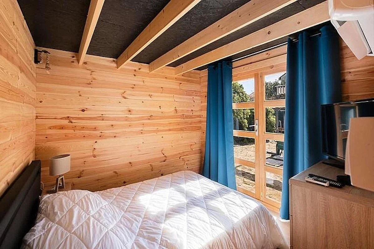 Diese charmante Studiohütte, komplett renoviert und im Erdgeschoss gelegen, bietet einen komfortablen Aufenthalt für bis zu 6 Gäste. Das Hauptwohnzimmer verfügt über ein 140 cm großes Schlafsofa, einen Fernseher, WLAN und eine Klimaanlage für zusätzlichen Komfort. Die Kabine verfügt außerdem über ein Etagenbett (2 x 90 cm). Die Unterkunft ist nicht haustierfreundlich, sodass allen Gästen eine ruhige Umgebung geboten wird. Darüber hinaus gibt es ein separates Nebengebäude mit einem 140 cm breiten Doppelbett, Fernseher und Klimaanlage, das zusätzlichen Platz und Privatsphäre bietet. Die Wohnung ist mit einem 140 m² großen Garten, Gartenmöbeln und einer Laube ausgestattet, die zum Entspannen einlädt.