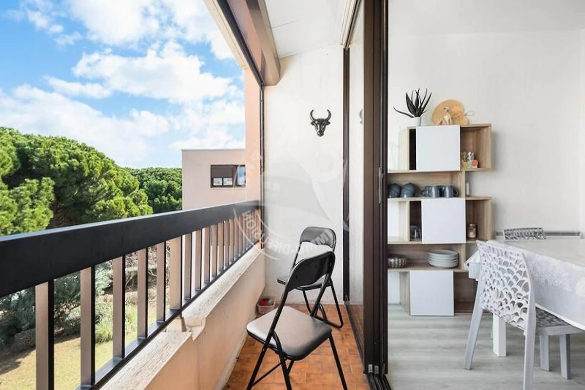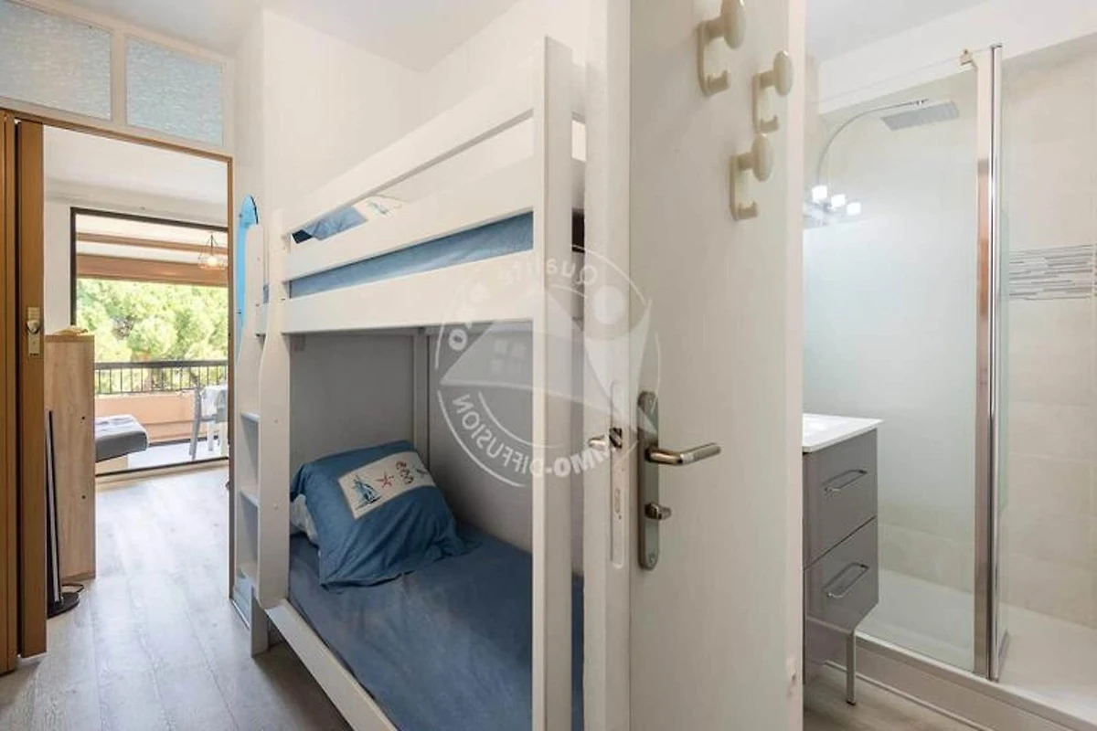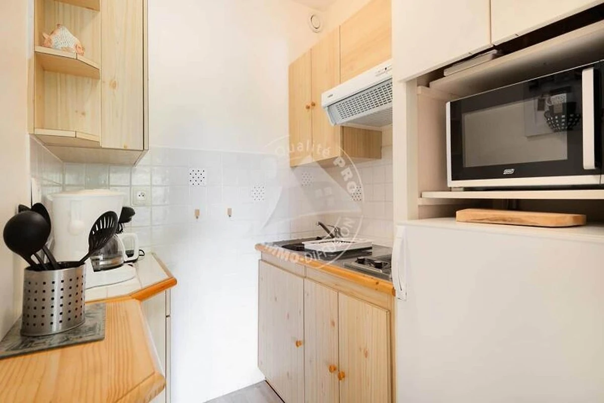 Dieses gemütliche Hüttenstudio befindet sich im 2. Stock einer sicheren Residenz mit Aufzug und bietet einen komfortablen Aufenthalt für bis zu 4/5 Personen. Das helle Wohnzimmer verfügt über ein 140-cm-Schlafsofa, einen Fernseher und öffnet sich zu einer geschlossenen Loggia und einem Balkon mit freiem Blick auf den Park. Am Eingang befindet sich ein kleiner Kabinenbereich mit 90-cm-Etagenbetten, ideal für Familien oder Gruppen. Das Studio ist haustierfrei und verfügt über eine Heizung für Ihren Komfort während Ihres Aufenthalts.