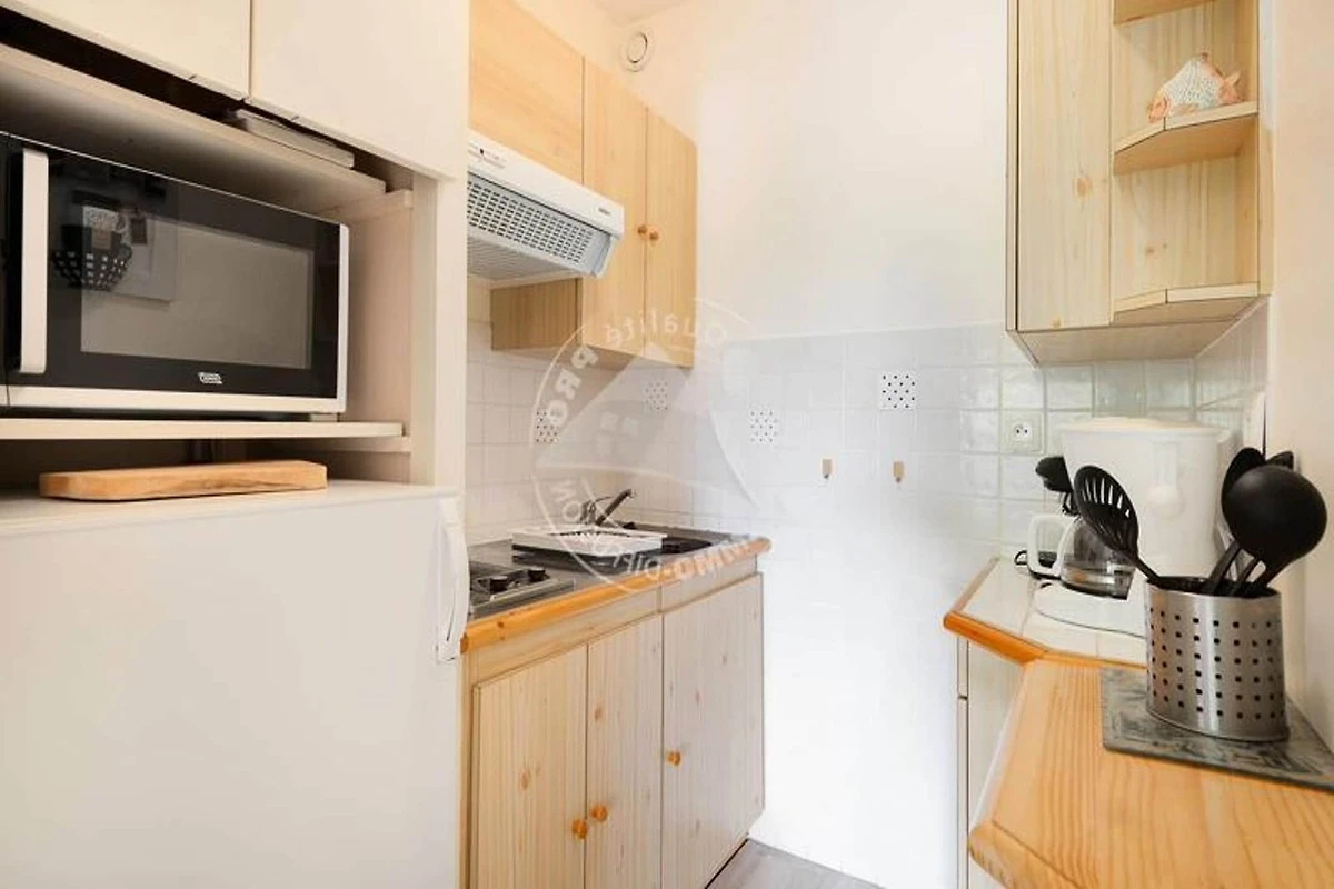 Für Ihren Komfort ist das Studio mit einer Küchenzeile mit Mikrowelle, Kühlschrank und Herd ausgestattet, sodass Sie in aller Ruhe Mahlzeiten zubereiten können. Das Badezimmer verfügt über eine Toilette und es gibt eine kleine Aufbewahrungsbox für Ihre Fahrräder, Motorroller oder Strandausrüstung. Dieser gut ausgestattete Raum sorgt für einen angenehmen und stressfreien Aufenthalt.