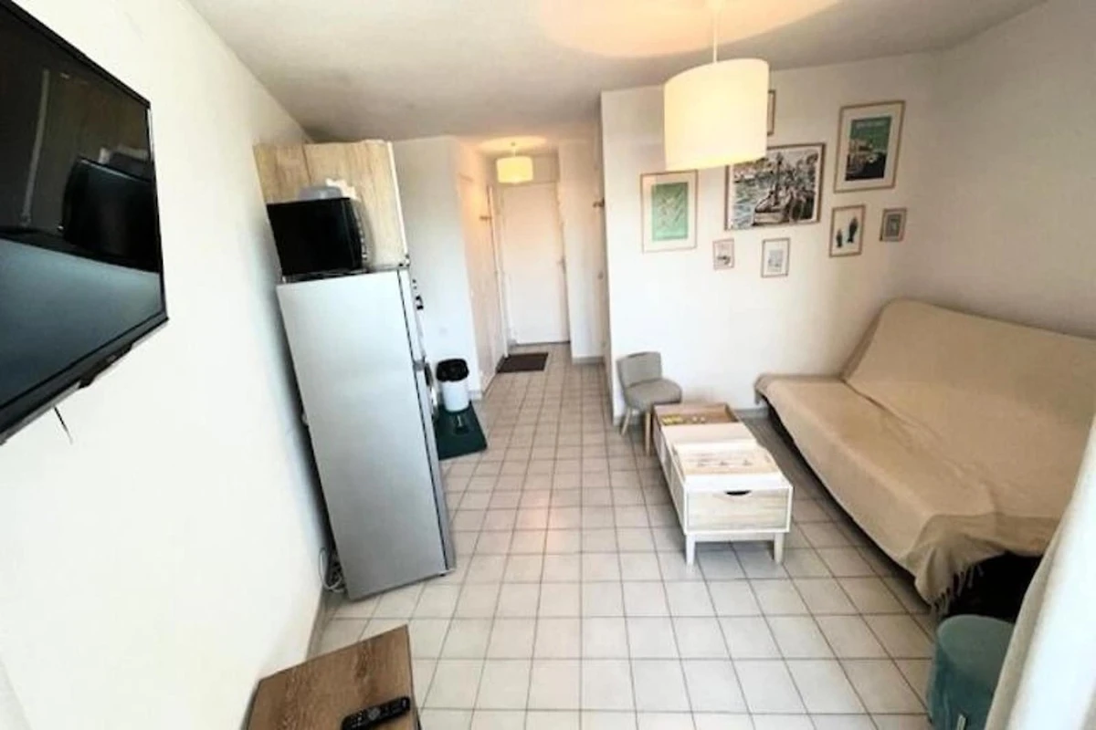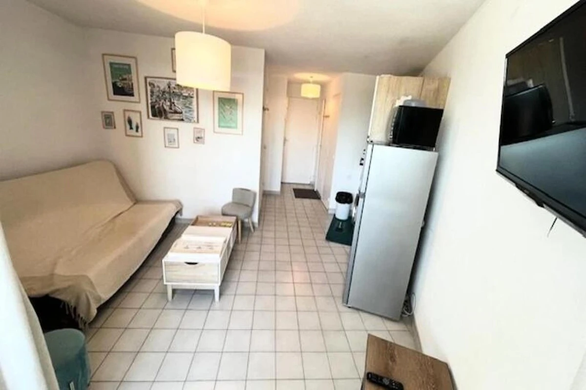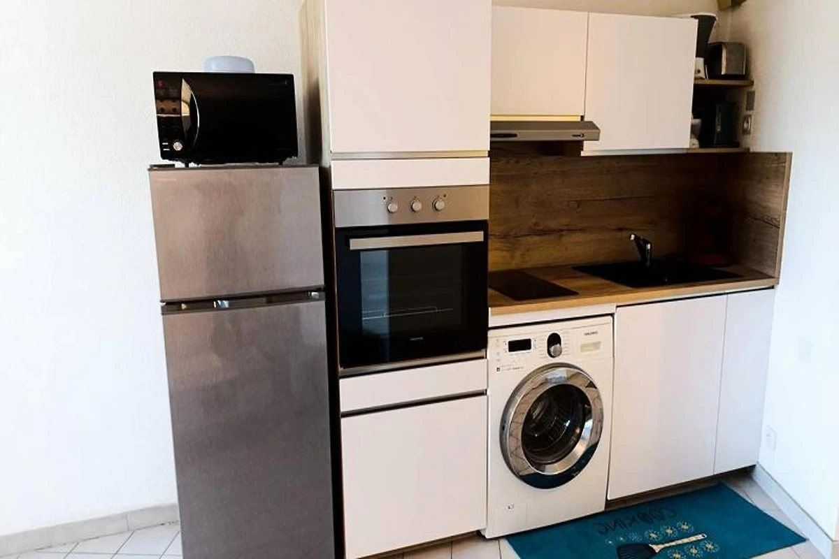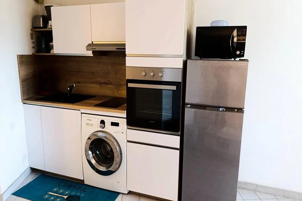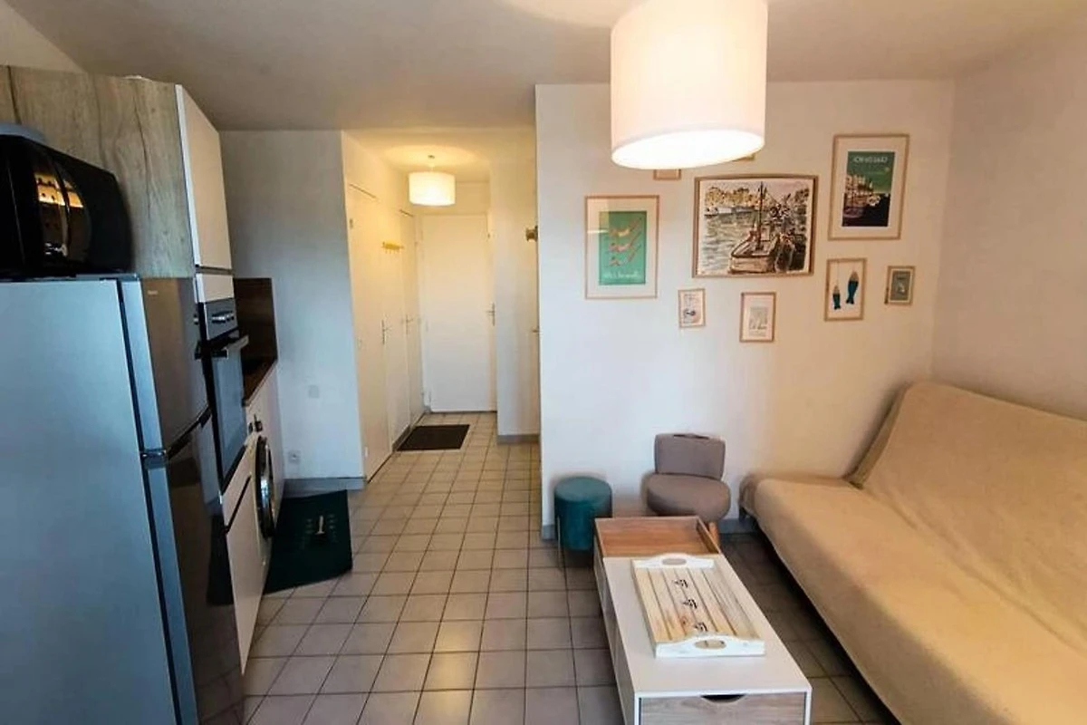 Dieses gemütliche P2-Apartment befindet sich im 3. Stock einer sicheren Residenz und ist ideal für bis zu 4 Gäste. Das 30 m² große Apartment verfügt über ein Wohnzimmer mit einem 140 cm großen Schlafsofa und einem Fernseher sowie Zugang zu einer Loggia. Es verfügt über eine voll ausgestattete Küche mit Backofen, Waschmaschine, Kühl-Gefrierkombination und Mikrowelle, sodass Sie bequem Mahlzeiten zubereiten können. Das Schlafzimmer verfügt über ein 140 cm breites Doppelbett, während das Badezimmer und die separate Toilette komfortable Annehmlichkeiten für Ihren Aufenthalt bieten. Private Parkplätze stehen zur Verfügung, was den Gästen zusätzlichen Komfort bietet.