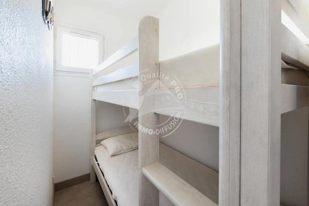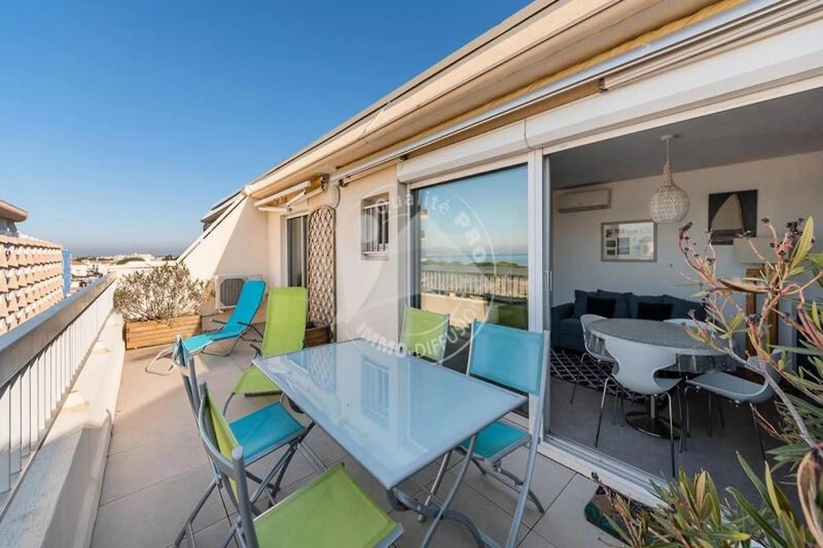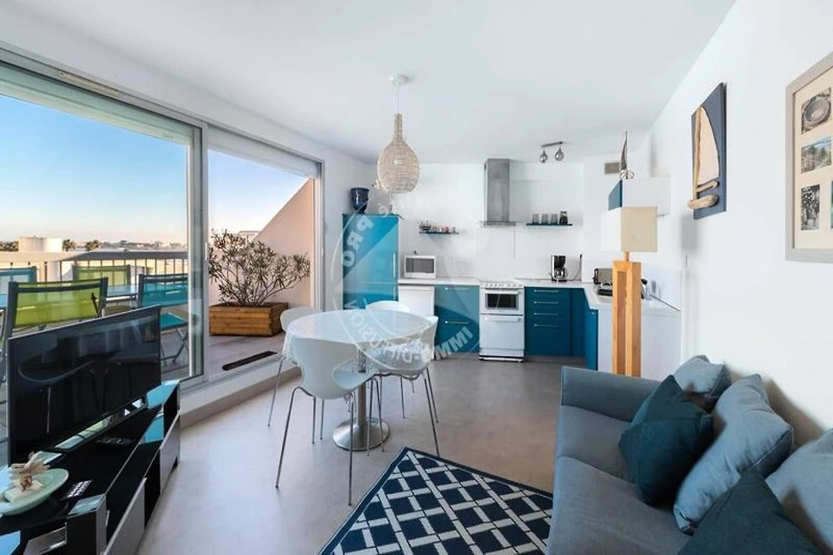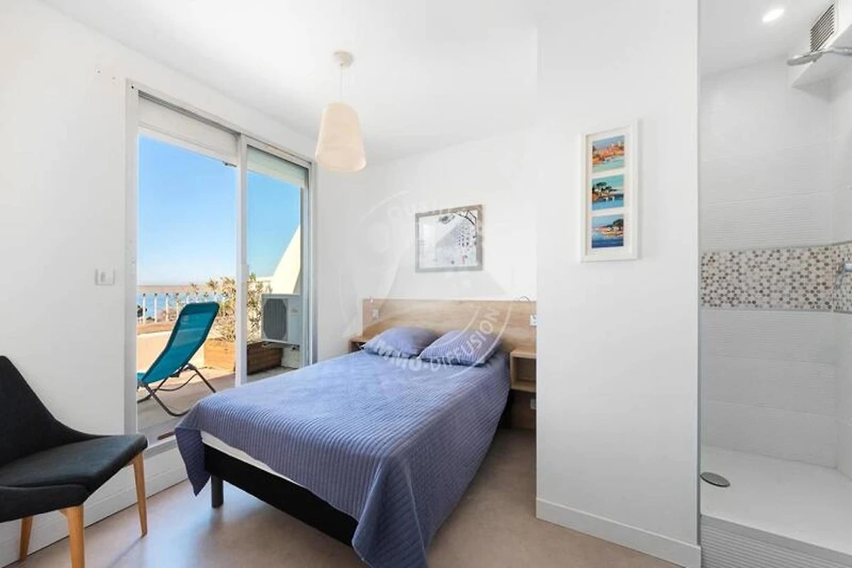 Dieses komplett renovierte 2-Zimmer-Kabinenapartment befindet sich im 5. Stock eines sicheren Gebäudes mit Aufzug und bietet eine wunderschöne 21 m² große Terrasse mit herrlichem Meerblick. Das 32 m² große Apartment ist für bis zu 4 Gäste ausgelegt und verfügt über ein gemütliches Wohnzimmer mit TV, WLAN und Klimaanlage. Die voll ausgestattete Küche verfügt über einen Backofen, einen Geschirrspüler und einen Kühlschrank und bietet alles, was Sie zum Zubereiten von Mahlzeiten benötigen. Ein Schlafzimmer verfügt über ein Doppelbett und eine Klimaanlage, während der separate Kabinenbereich über Etagenbetten verfügt und sich somit ideal für Familien oder kleine Gruppen eignet. Das Apartment verfügt außerdem über ein Badezimmer und ein separates WC für zusätzlichen Komfort.