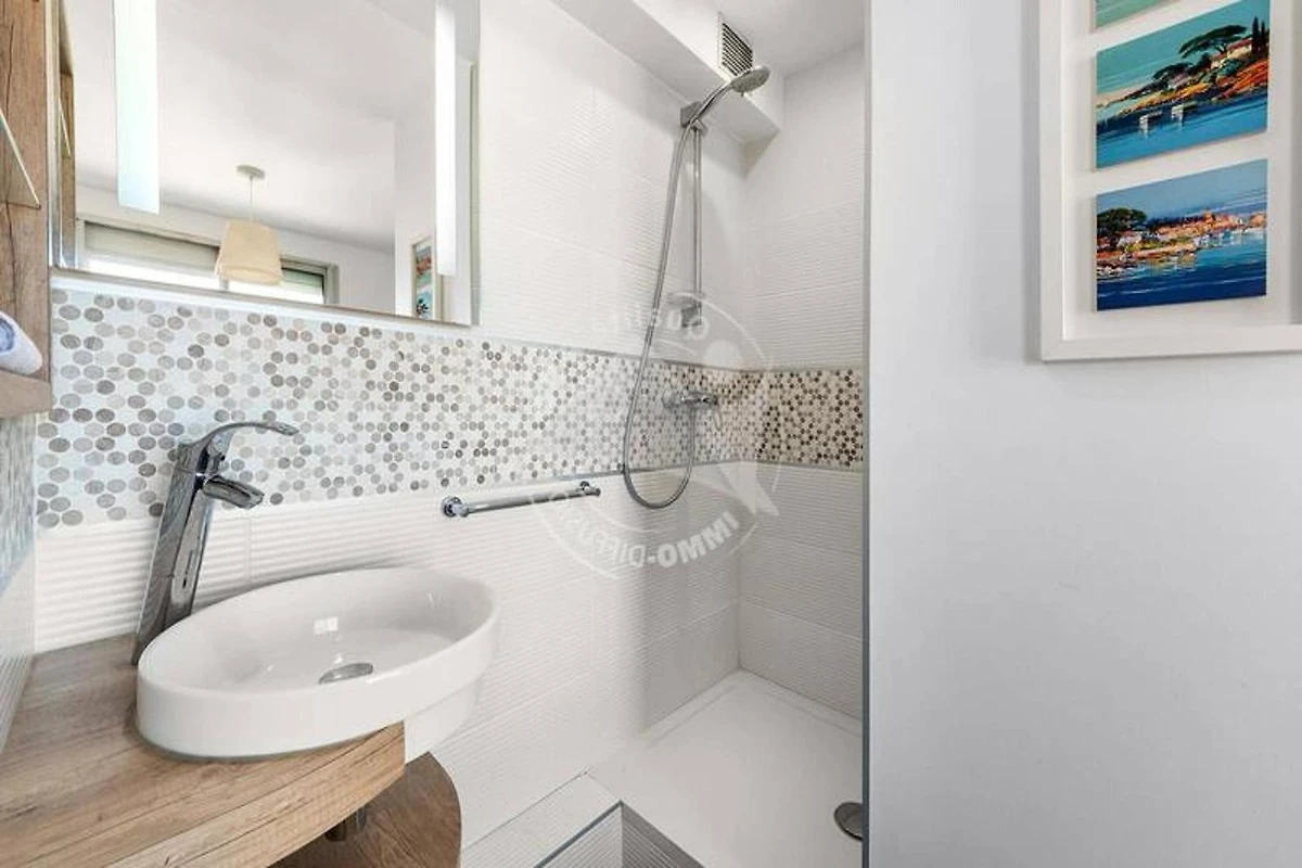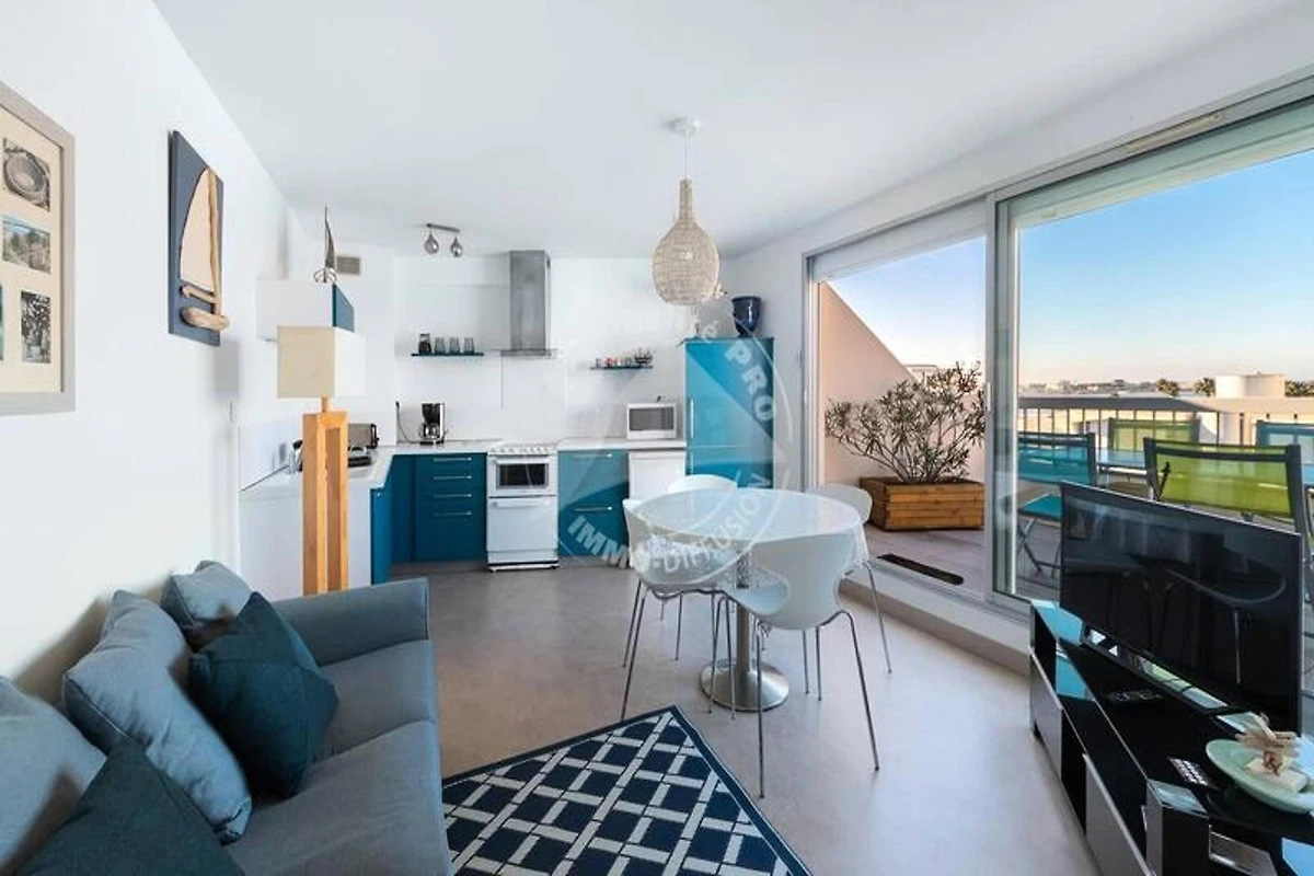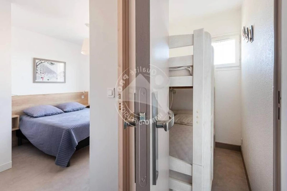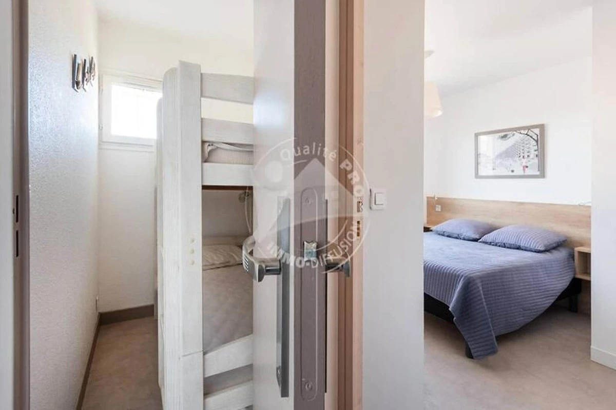 Dieses komplett renovierte 2-Zimmer-Kabinenapartment befindet sich im 5. Stock eines sicheren Gebäudes mit Aufzug und bietet eine wunderschöne 21 m² große Terrasse mit herrlichem Meerblick. Das 32 m² große Apartment ist für bis zu 4 Gäste ausgelegt und verfügt über ein gemütliches Wohnzimmer mit TV, WLAN und Klimaanlage. Die voll ausgestattete Küche verfügt über einen Backofen, einen Geschirrspüler und einen Kühlschrank und bietet alles, was Sie zum Zubereiten von Mahlzeiten benötigen. Ein Schlafzimmer verfügt über ein Doppelbett und eine Klimaanlage, während der separate Kabinenbereich über Etagenbetten verfügt und sich somit ideal für Familien oder kleine Gruppen eignet. Das Apartment verfügt außerdem über ein Badezimmer und ein separates WC für zusätzlichen Komfort.