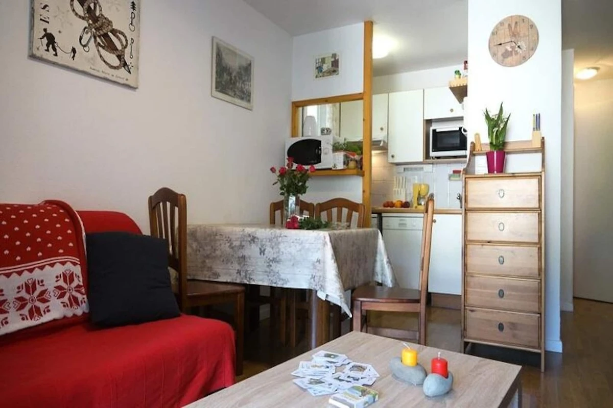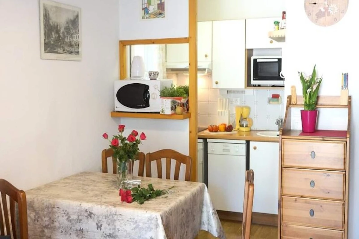 Diese ruhige und moderne 3-Zimmer-Wohnung befindet sich im 3. Stock einer Residenz nur 50 Meter von der Therme entfernt und bietet einen komfortablen Aufenthalt für bis zu 4 Personen. Das 39 m² große Apartment verfügt über einen geräumigen Wohnbereich mit einem Schlafsofa, einem TV und einer ausgestatteten Küchenzeile mit Mikrowelle, Minibackofen, Wasserkocher, Kaffeemaschine und Geschirrspüler. Es umfasst außerdem ein Schlafzimmer mit einem 140-cm-Bett, einem Kleiderschrank und einem Nachttisch sowie ein zweites Schlafzimmer mit zwei Etagenbetten und einer Kommode. Die Wohnung verfügt über ein Badezimmer mit Dusche und ein separates WC.