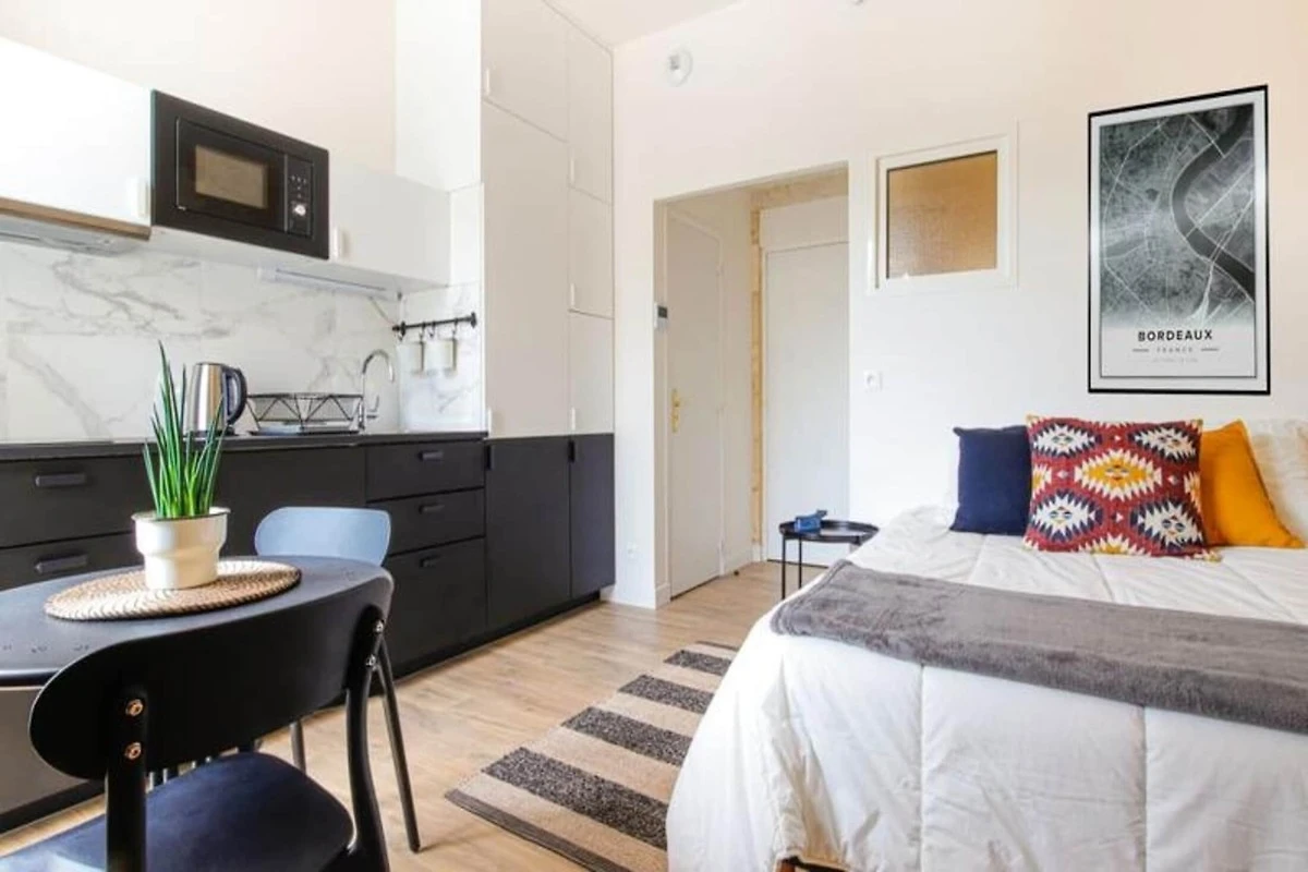 Das Apartment verfügt außerdem über eine gut ausgestattete Küche, die sich ideal für die Zubereitung von Mahlzeiten mit regionalen Zutaten eignet. Wichtige Geräte wie ein Bügeleisen, ein Haartrockner und grundlegende Haushaltsprodukte sorgen für einen stressfreien Aufenthalt. Ganz gleich, ob Sie Bordeaux wegen seiner berühmten Weinkultur oder seiner eleganten Architektur besuchen, dieses Anwesen verspricht Komfort und Bequemlichkeit in einer unschlagbaren Lage.