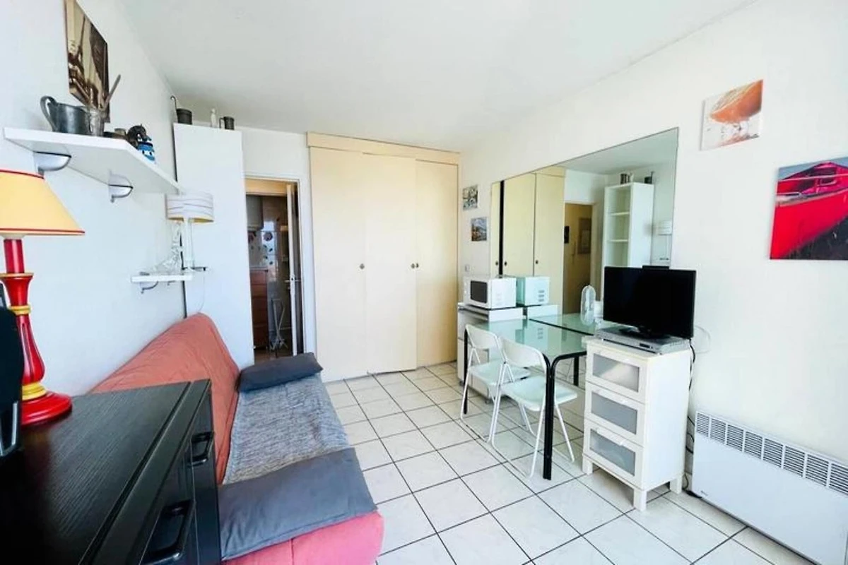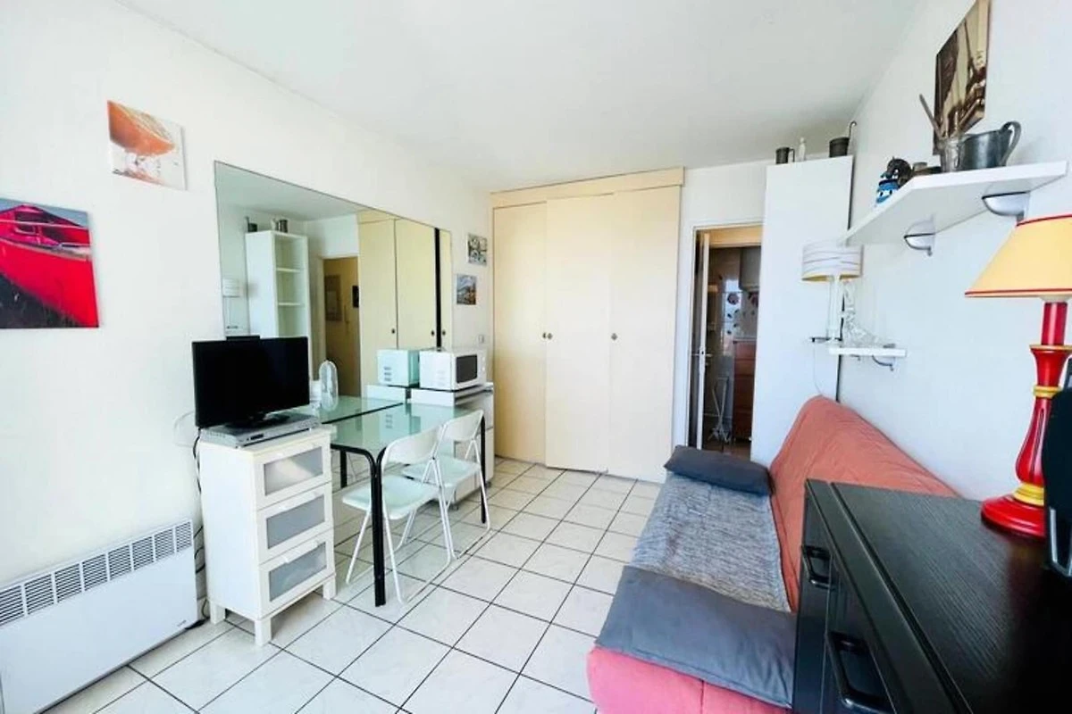 Auf der vorletzten Etage einer sicheren Residenz in Arcachon Aiguillon bietet dieses Studio mit Balkon einen atemberaubenden Blick auf das Becken und den Fischereihafen. Die Residenz verfügt über einen Swimmingpool, einen Hausmeister und einen Aufzug. Bei Ihrer Ankunft finden Sie eine Eingangshalle, die zu einem Duschraum mit WC führt. Der lichtdurchflutete Hauptraum mit Panoramablick ist mit einem 140 cm breiten Schlafsofa, einem Fernseher, einem DVD-Player, einer Mikrowelle und einer Küchenzeile mit elektrischen Kochplatten und einem kleinen Kühlschrank ausgestattet. Der möblierte Balkon mit Markise lädt zum Entspannen im Freien ein.