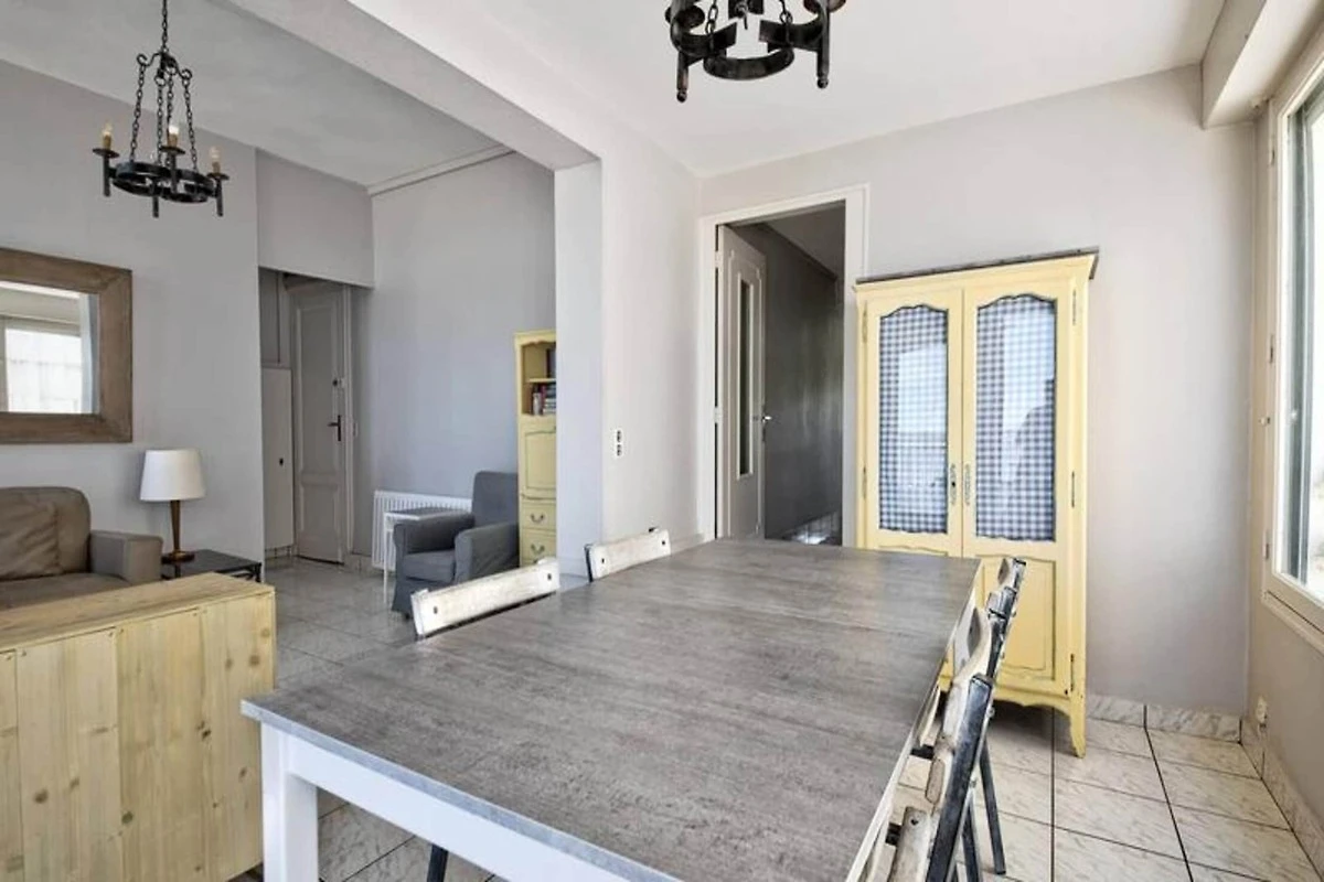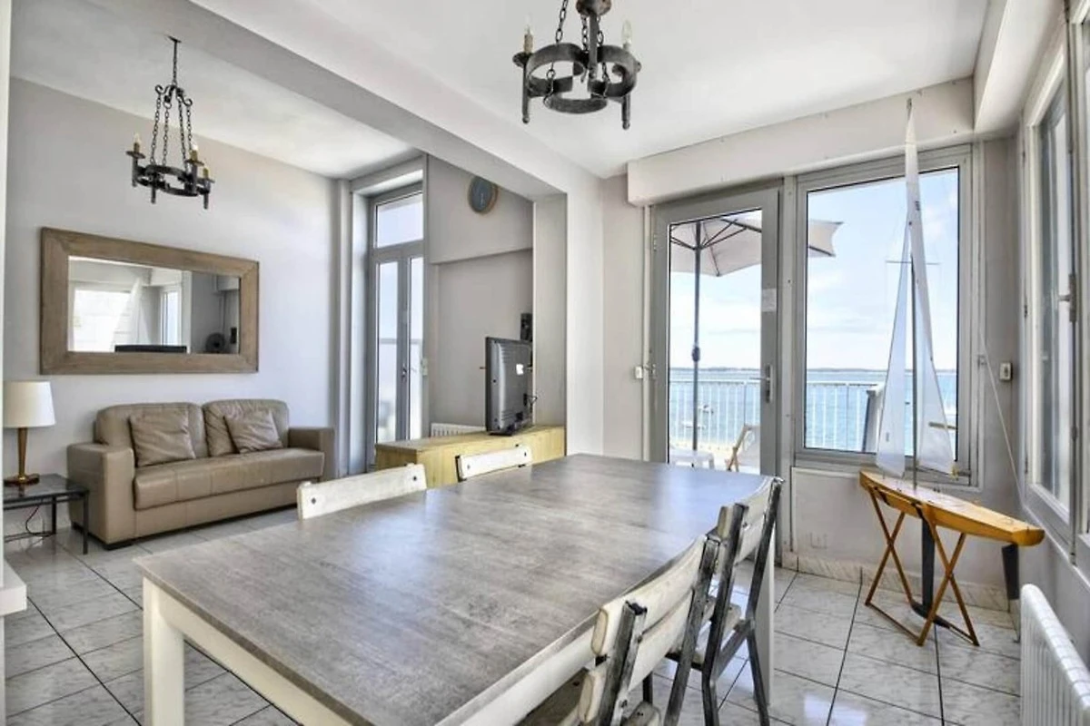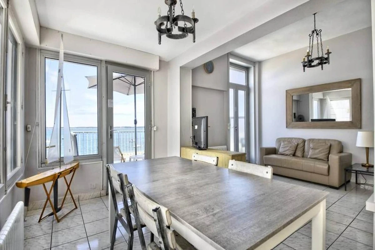 Dieses charmante Apartment mit einem Schlafzimmer liegt im begehrten Viertel Pereire in Arcachon im ersten Stock einer Villa am Meer und bietet einen atemberaubenden Panoramablick auf die Bucht und direkten Zugang zum Strand. Das geräumige Wohnzimmer empfängt Sie mit einem bequemen 120-cm-Schlafsofa und einem Fernseher und bietet einen gemütlichen Ort zum Entspannen mit Blick auf den Pool und die Umgebung. Der nach Norden ausgerichtete Speisesaal ist ideal, um Mahlzeiten zu genießen und dabei die spektakuläre Landschaft zu genießen. Ein Flur führt zu einem Badezimmer mit Waschmaschine, separaten Toiletten und einer voll ausgestatteten Küche mit Essbereich. Das ruhige, nach Süden ausgerichtete Schlafzimmer ist mit einem 160 x 200 cm großen Bett für erholsame Nächte ausgestattet.