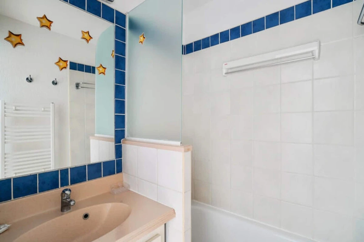 Das Apartment verfügt über eine voll ausgestattete Küche mit offenem Grundriss, die sich perfekt zum Kochen von Mahlzeiten zu Hause eignet. Das Badezimmer verfügt über eine Kombination aus Badewanne und Dusche sowie ein separates WC für zusätzlichen Komfort. In den Sommermonaten können Gäste außerdem Zugang zu einem unbeheizten Swimmingpool genießen und so die perfekte Balance zwischen Entspannung und Abenteuer am Meer schaffen.