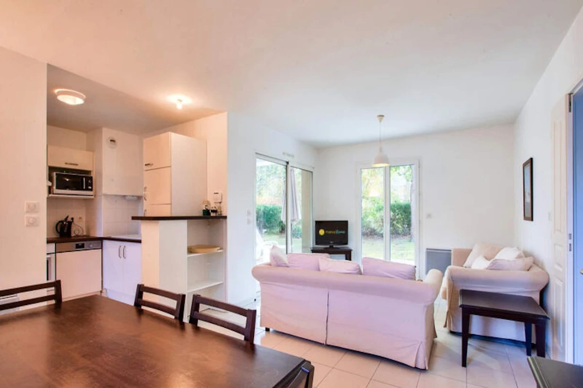 Im Herzen eines �ppig gr�nen Parks gelegen, bietet diese charmante Villa einen gerהumigen und komfortablen Aufenthalt f�r bis zu 6 Personen. Das Anwesen verf�gt �ber 2 Schlafzimmer, mit einem Doppelbett im Hauptschlafzimmer und 2 Einzelbetten im zweiten Zimmer. Das Wohnzimmer ist mit 2 ausziehbaren Sofas ausgestattet, die zusהtzlichen Schlafplatz bieten. Haustiere sind gegen Aufpreis gestattet. Bettwהsche und Handt�cher kצnnen gegen Aufpreis angefordert werden. Zur Wohnung gehצren eine private Terrasse und ein Garten sowie ein ausgewiesener Parkplatz.