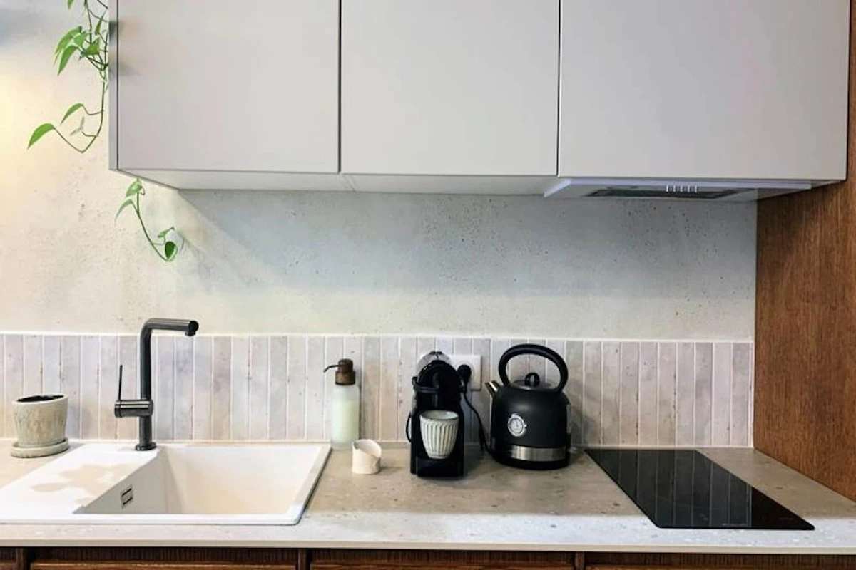 Das Apartment verf�gt �ber eine voll ausgestattete K�che mit Geschirrsp�ler, Mikrowelle, Nespresso-Kaffeemaschine und mehr. F�r Ihren Komfort stehen Ihnen ein Waschtrockner, ein Haartrockner und ein B�gelset zur Verf�gung. Genie�en Sie schnelles WLAN mit Ultra-Highspeed-Internet und einen gro�en HD-Fernseher inklusive Netflix- und Prime Video-Abonnements. F�r zusהtzlichen Komfort verf�gt das Apartment �ber eine integrierte Klimaanlage und bietet gegen Aufpreis einen Privatparkplatz.