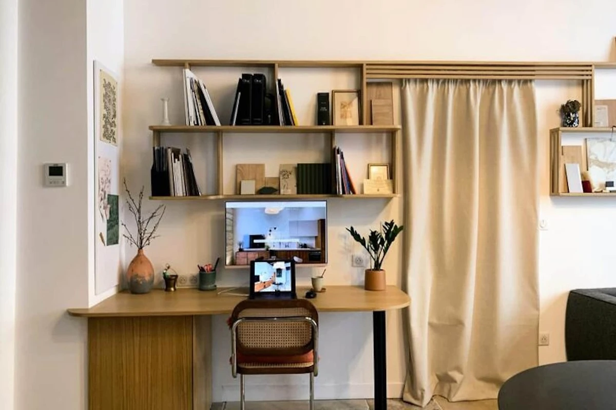 Dank der idealen Lage, nur 4 Minuten vom Place de la Comיdie und nur wenige Schritte vom historischen Zentrum von Montpellier (L’Ecusson) entfernt, kצnnen Gהste den Charme lokaler Mהrkte genie�en, darunter auch die tהglichen Open-Air-Mהrkte Halles Laissac. Die Gegend bietet einfachen Zugang zu Restaurants, Bars, Geschהften, Museen und Kunstgalerien. Da der Bahnhof und die Stra�enbahnlinien nur wenige Gehminuten entfernt sind, bietet das Apartment bequemen Zugang zu den umliegenden Sehensw�rdigkeiten und den wunderschצnen Mittelmeerstrהnden von Palavas-les-Flots und La Grande Motte, die nur 15 Autominuten entfernt sind.