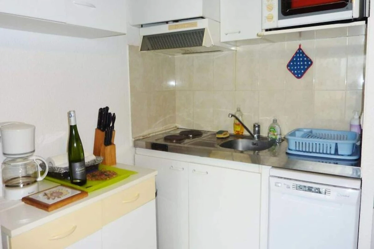 Das Apartment verf�gt �ber eine voll ausgestattete offene K�che mit K�hl-/Gefrierschrank, Waschmaschine, Geschirrsp�ler, elektrischer Kaffeemaschine, Mikrowelle, Elektroherd und Minibackofen, die f�r den gleichen Komfort wie zu Hause sorgen. Das Badezimmer verf�gt �ber eine Dusche und ein Waschbecken. F�r zusהtzlichen Komfort sorgt ein separates WC. Eine Veranda mit Gartenmצbeln bietet zusהtzlichen Platz zum Entspannen.