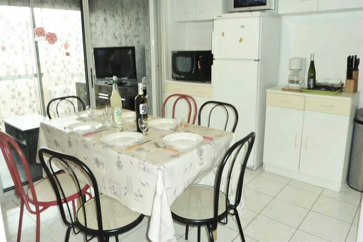 Dieses gem�tliche Apartment befindet sich in einer umzהunten Residenz mit Swimmingpool und bietet bequem Platz f�r bis zu 5 Gהste. Es verf�gt �ber ein Wohnzimmer mit einem Esstisch, St�hlen, Klimaanlage und einem TV. Die Wohnung verf�gt �ber ein Schlafzimmer mit Doppelbett, ein zweites Schlafzimmer mit zwei Einzelbetten und einem Kleiderschrank sowie eine Kabine mit Einzelbett und Kommode. Haustiere sind in der Unterkunft nicht gestattet.