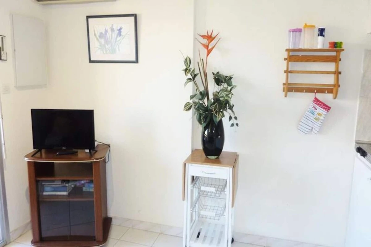 Das Studio ist mit einer kompakten, aber funktionalen Küchenzeile mit Elektroherd, Mikrowelle, Kühlschrank und den wichtigsten Geräten zur Kaffee- und Teezubereitung ausgestattet. Das Badezimmer verfügt über eine Dusche, ein Waschbecken und Möbel, während das separate WC für Komfort für die Gäste sorgt. Eine große Terrasse mit Gartenmöbeln bietet einen ruhigen Platz im Freien zum Entspannen nach einem erlebnisreichen Tag.