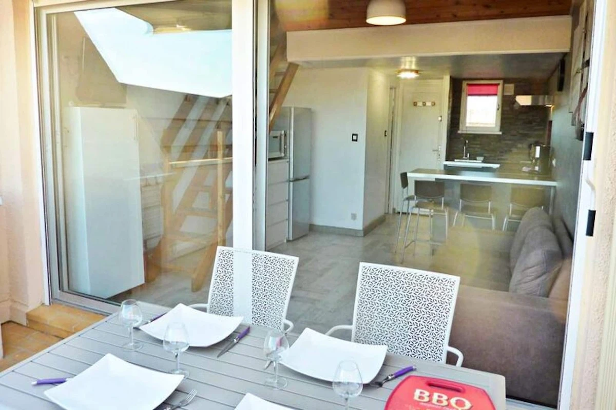 Das Apartment verf�gt �ber einen voll ausgestatteten K�chenbereich mit K�hl-Gefrierkombination, Cerankochfeld, Mikrowelle, Backofen, Geschirrsp�ler und Kaffeemaschine, der alles Nצtige f�r die Zubereitung von Mahlzeiten bietet. Ein Badezimmer mit Dusche, Waschbecken und Waschmaschine sorgt f�r zusהtzlichen Komfort. Im Obergeschoss bietet ein Schlafzimmer mit Doppelbett, TV, gro�en Schrהnken und Klimaanlage einen erholsamen R�ckzugsort. Die Terrasse ist mit Gartenmצbeln, einem elektrischen Grill und einer Markise ausgestattet, damit Sie den Aufenthalt im Freien genie�en kצnnen. Ein optionaler Internetzugang ist gegen Aufpreis verf�gbar.