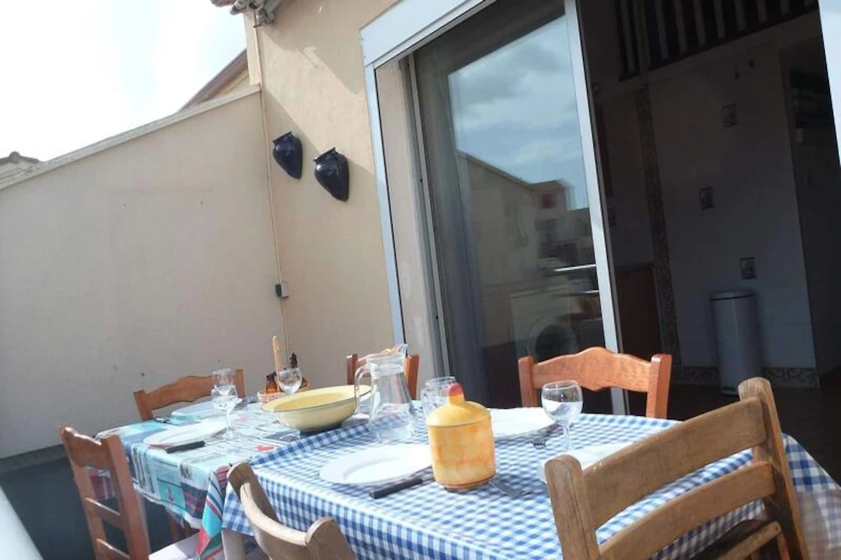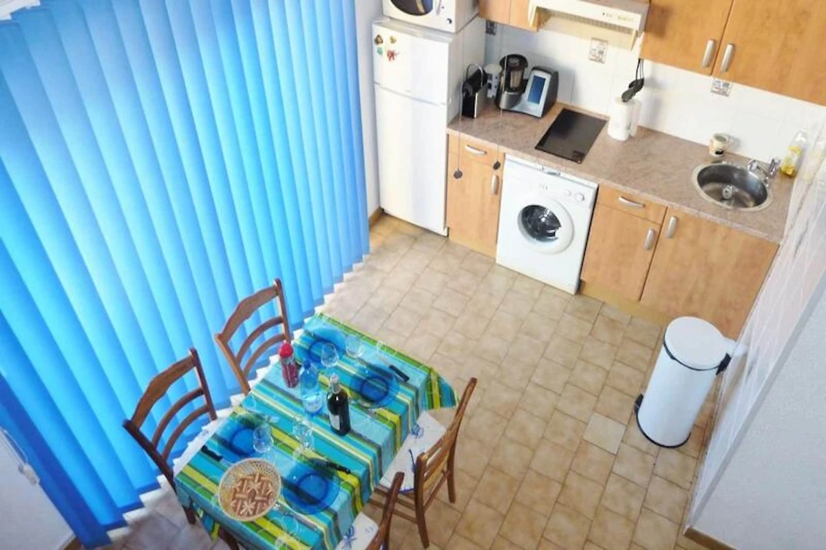Dieses gem�tliche 2-Zimmer-Mezzanine-Apartment befindet sich in einer geschlossenen Residenz und bietet Platz f�r bis zu 6 Gהste. Es verf�gt �ber ein Wohnzimmer mit TV, Esstisch und St�hlen sowie ein Schlafzimmer mit einem gro�en Bett. Im Zwischengeschoss gibt es ein weiteres gro�es Bett, ein ausziehbares Sofa und einen Fernseher. Das Badezimmer verf�gt �ber eine Dusche und ein separates WC, und zur Wohnung gehצrt eine Terrasse mit Gartenmצbeln. Ein Parkplatz ist ebenfalls vorhanden. Haustiere sind nicht erlaubt.