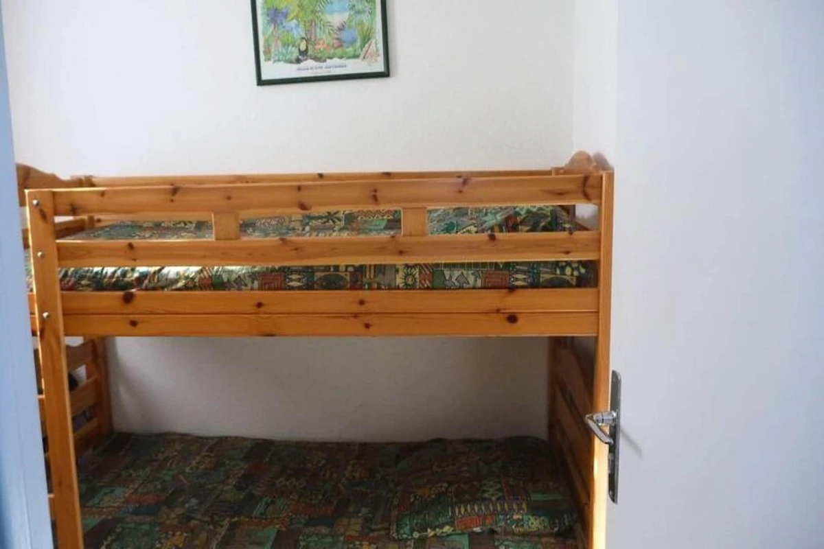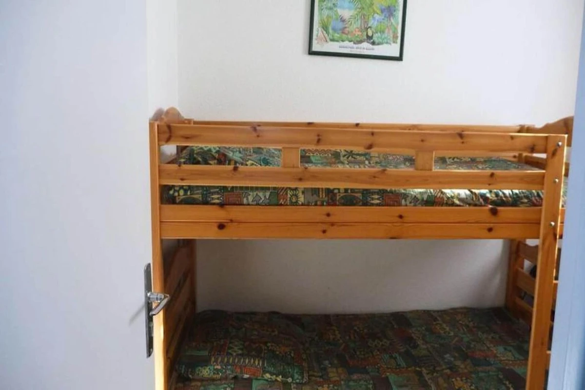 Diese gemütliche Ferienwohnung ist für einen komfortablen Aufenthalt konzipiert und bietet Platz für bis zu vier Personen. Das Wohnzimmer ist für Ihren Komfort mit einem Sofa, einem Tisch, Stühlen, einem Fernseher und einer Klimaanlage ausgestattet. Die Wohnung verfügt über zwei Schlafzimmer: eines mit Doppelbett und Kommode und das zweite mit zwei Etagenbetten und einer Kommode. Um eine ruhige Umgebung zu gewährleisten, sind in der Unterkunft keine Haustiere erlaubt.