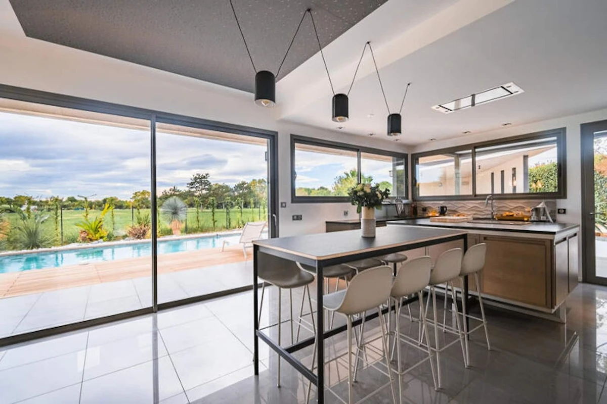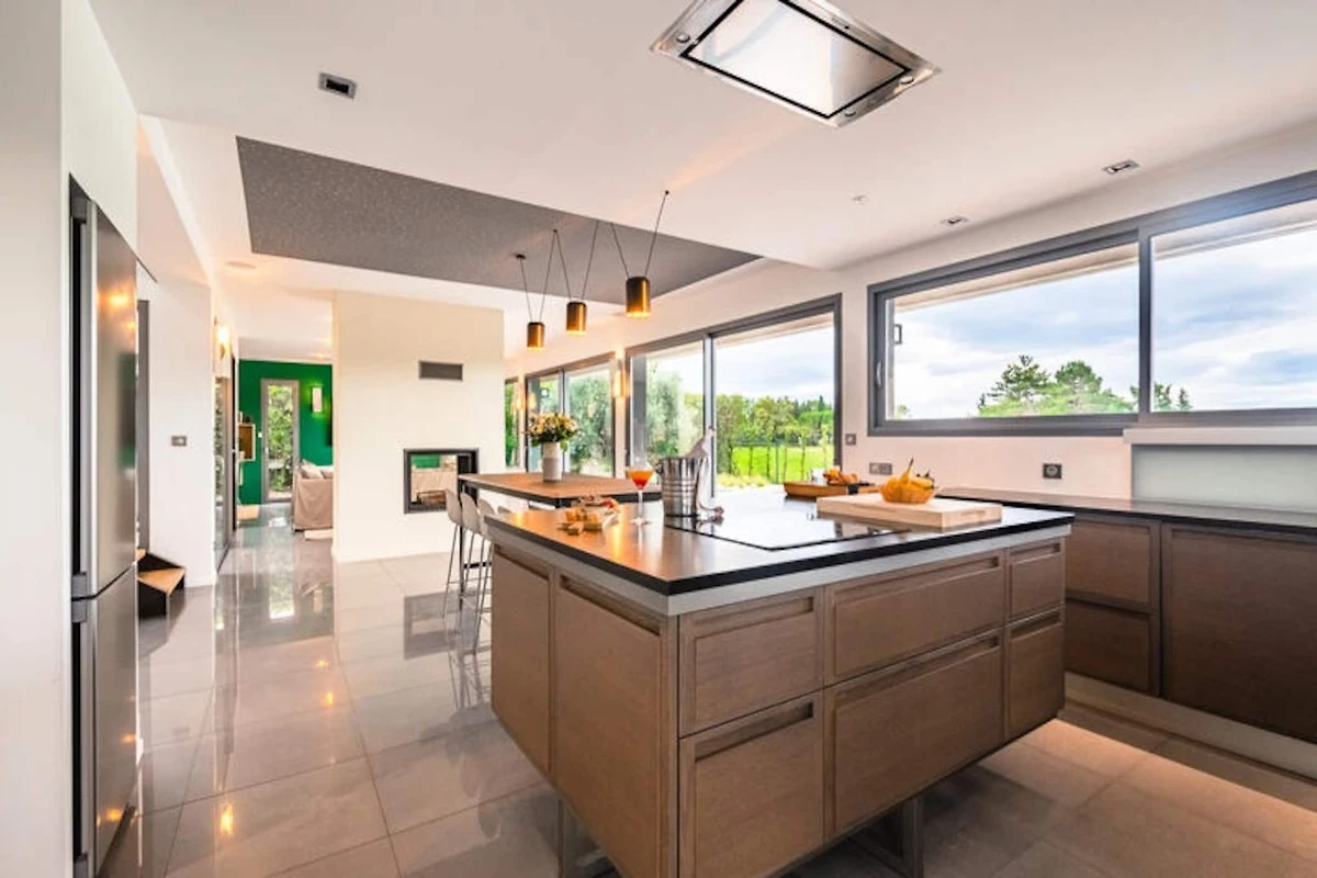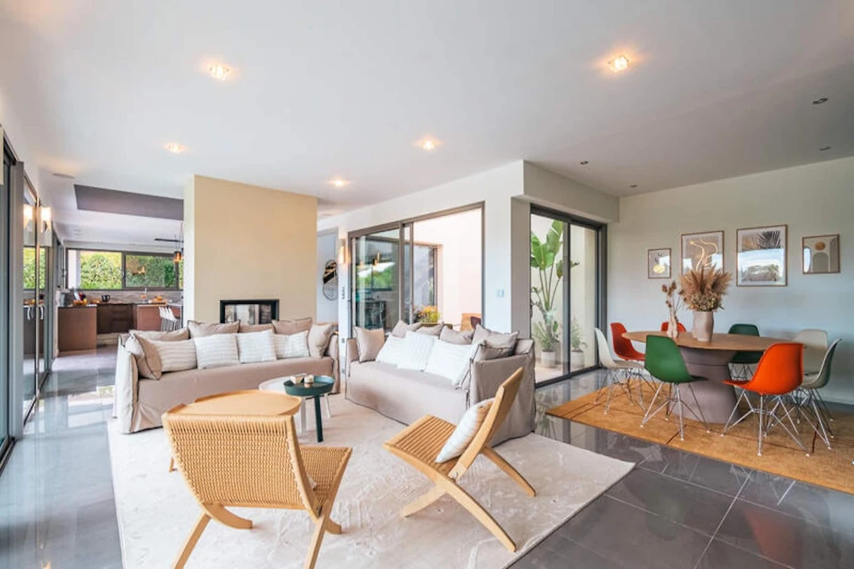 Die Küche der Villa ist komplett mit modernen Geräten für die Zubereitung von Mahlzeiten ausgestattet, während eine Garage sichere Parkplätze für Ihren Komfort bietet. Zu den weiteren Annehmlichkeiten gehören kostenlose Parkplätze im Freien, Bettwäsche, Handtücher und ein Frühstücksbuffet. Das Anwesen verfügt außerdem über eine Ladestation für Elektroautos, sodass Sie die Gegend bequem erkunden können. Die Endreinigung ist im Preis inbegriffen, mit Ausnahme von Müll und Geschirr.