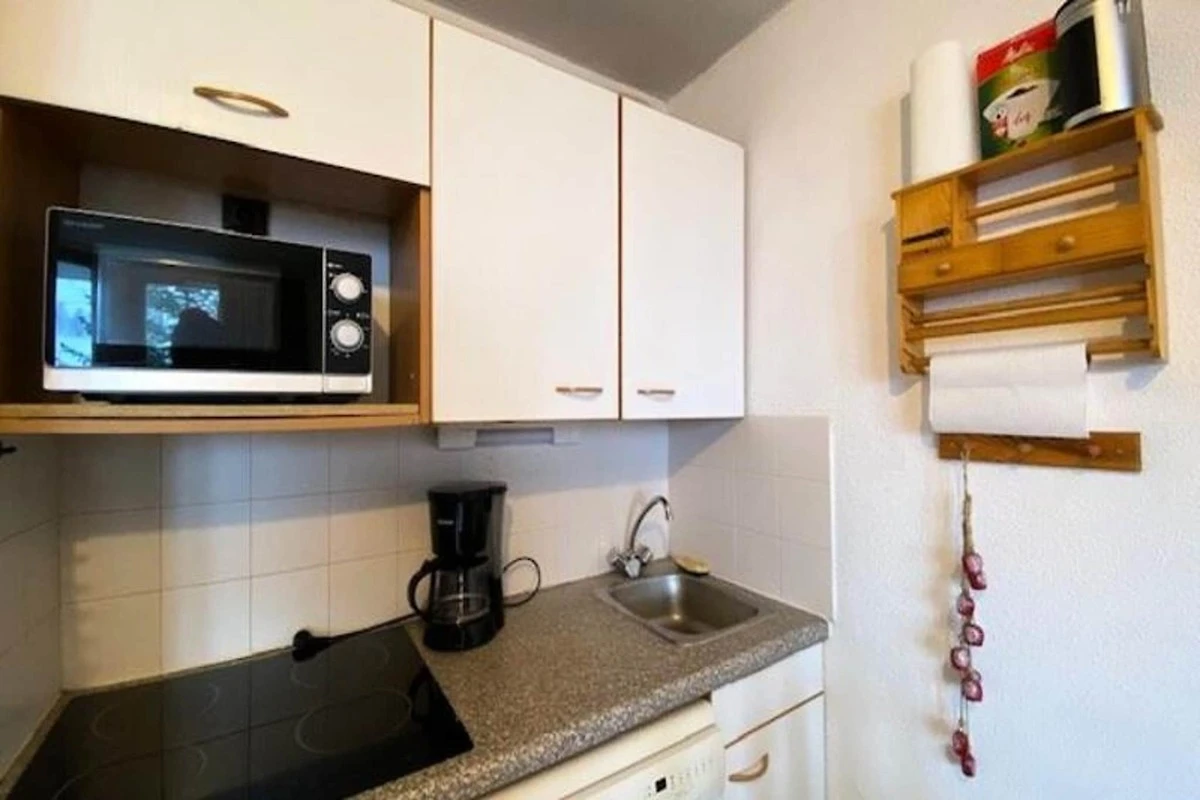 Dieses helle und funktionale Apartment eignet sich perfekt für einen Familienurlaub und bietet einen komfortablen Aufenthalt mit einem Schlafzimmer mit viel Stauraum. Es verfügt außerdem über eine gemütliche Bergecke, ideal für Kinder oder zusätzliche Gäste, ein Badezimmer und eine separate Toilette. Das geräumige Wohnzimmer bietet eine einladende Umgebung zum Entspannen. Die Wohnung ist nicht haustierfreundlich, sodass ein ruhiger und friedlicher Aufenthalt gewährleistet ist. Der nach Osten ausgerichtete Balkon bietet einen spektakulären Blick auf die Pisten und das Anwesen verfügt über praktische Annehmlichkeiten wie einen Eigentumswohnungsparkplatz mit magnetischer Barriere (je nach Verfügbarkeit).
