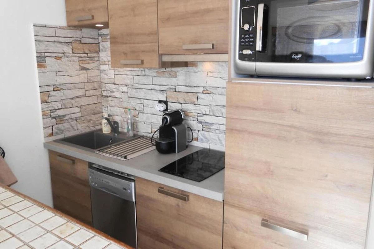 Das Apartment verfügt über eine voll ausgestattete, zum Wohnzimmer offene Küche mit 2 Cerankochfeldern, einer kombinierten Mikrowelle, einem Kühlschrank, einem Geschirrspüler, einer Kaffeemaschine, einem Wasserkocher, einem Toaster, einem Raclettegerät und einem Fondue-Set. Das Badezimmer verfügt über eine Badewanne und für zusätzlichen Komfort gibt es ein separates WC. Bettwäsche, Handtücher, WLAN und die Endreinigung sind gegen Aufpreis verfügbar und sollten im Voraus reserviert werden.