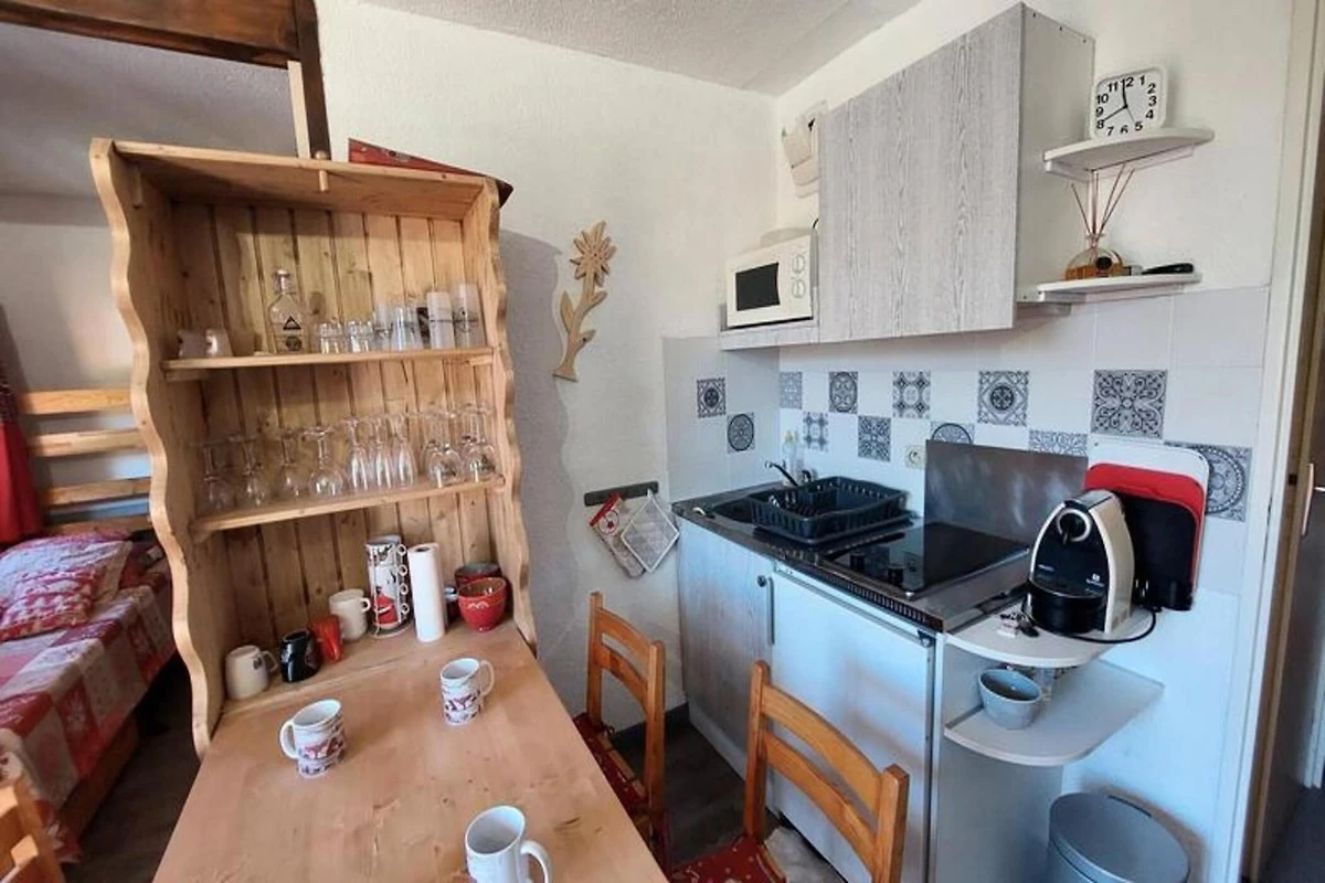 Dieses 29 m² große T2-Apartment befindet sich im 7. Stock einer Residenz mit Aufzug und bietet bequem Platz für bis zu vier Gäste. Das Wohnzimmer ist mit einem BZ-Sofa (140x190), einem Fernseher und einem Hirtentisch im Essbereich ausgestattet und sorgt so für eine gemütliche Atmosphäre zum Entspannen. Die Wohnung verfügt über einen nach Osten ausgerichteten Balkon mit freiem Blick, auf dem Sie die Morgensonne genießen können. Haustiere sind nicht gestattet, sodass ein ruhiger Aufenthalt gewährleistet ist.